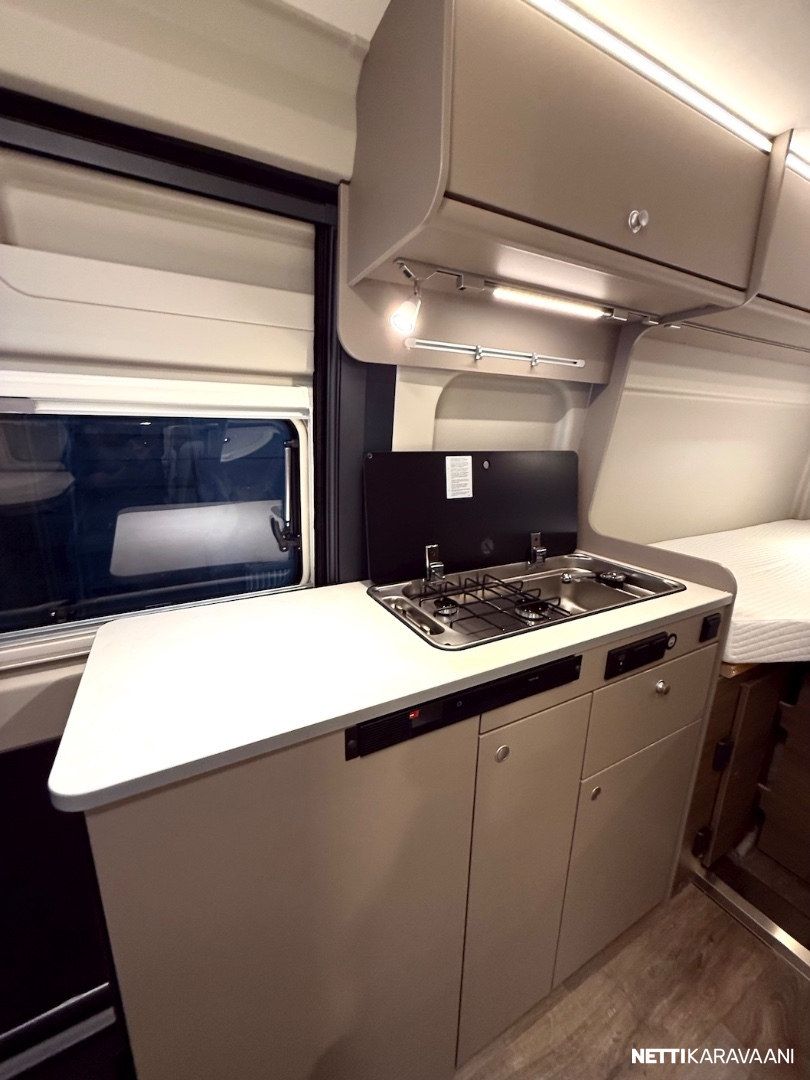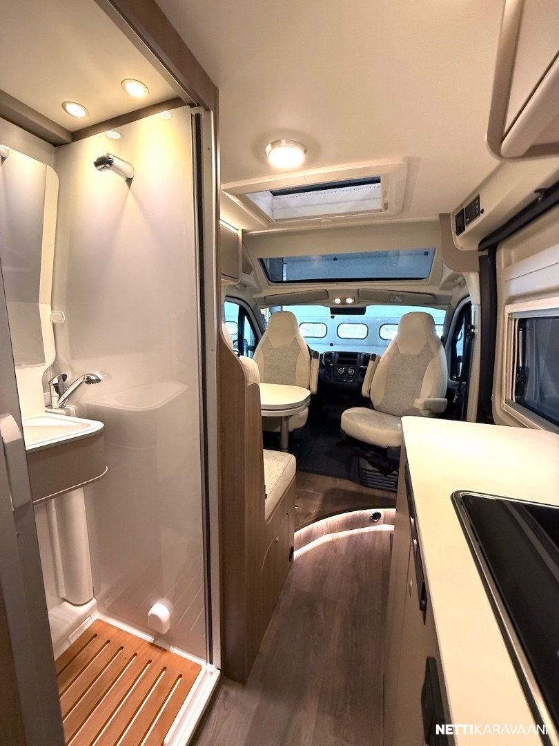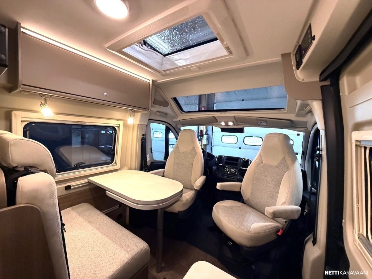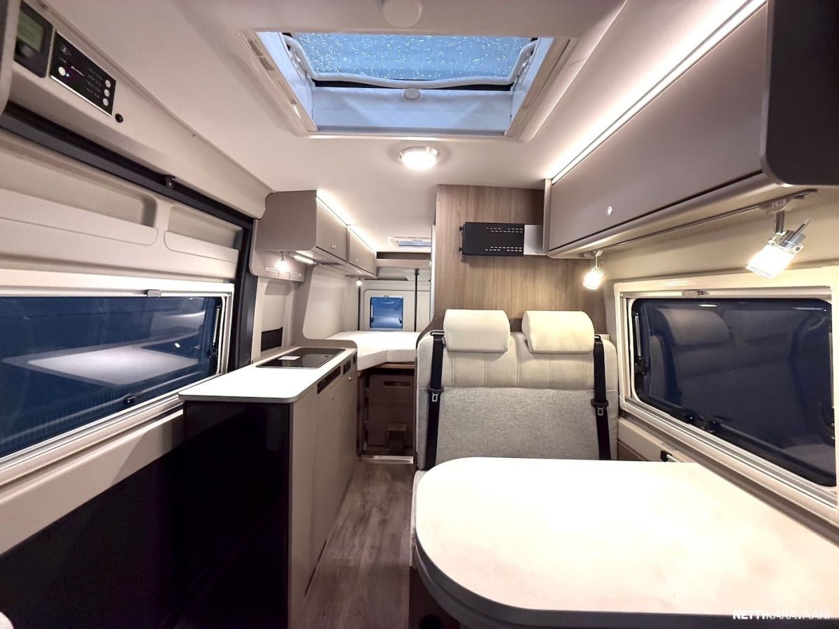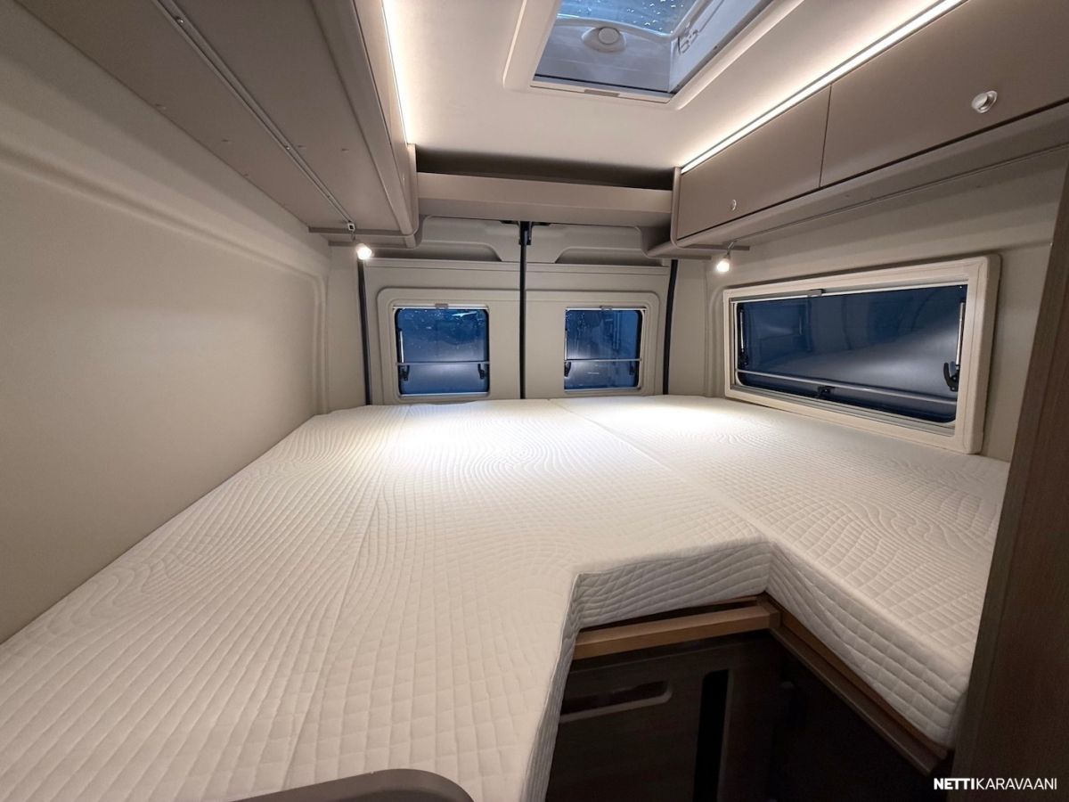 Miellyttävä 8-vaihteinen automaattivaihteisto, tehokkaat FullLED -ajovalot ja LED -päiväajovalot sekä dynaamiset vilkut, Alustan turvallisuuspaketti (sis. Jarruavustin, joka tunnistaa jalankulkijat ja pyöräilijät, Sade- ja hämärätunnistin, Kaistavahti, Liikennemerkki- ja kaukovalotunnistin, Kuljettajan vireystilan tunnistin, Älykäs nopeusavustin) Artense -harmaa metalliväri, Truma Combi 6E -lämmitys kaasulla ja sähköllä, eristetty ja lämmitetty harmaavesisäiliö, puinen suihkulattian ritilikkö, TV-teline ja valmius, White -verhoilu, vuoteentekomahdollisuus istuinryhmästä.