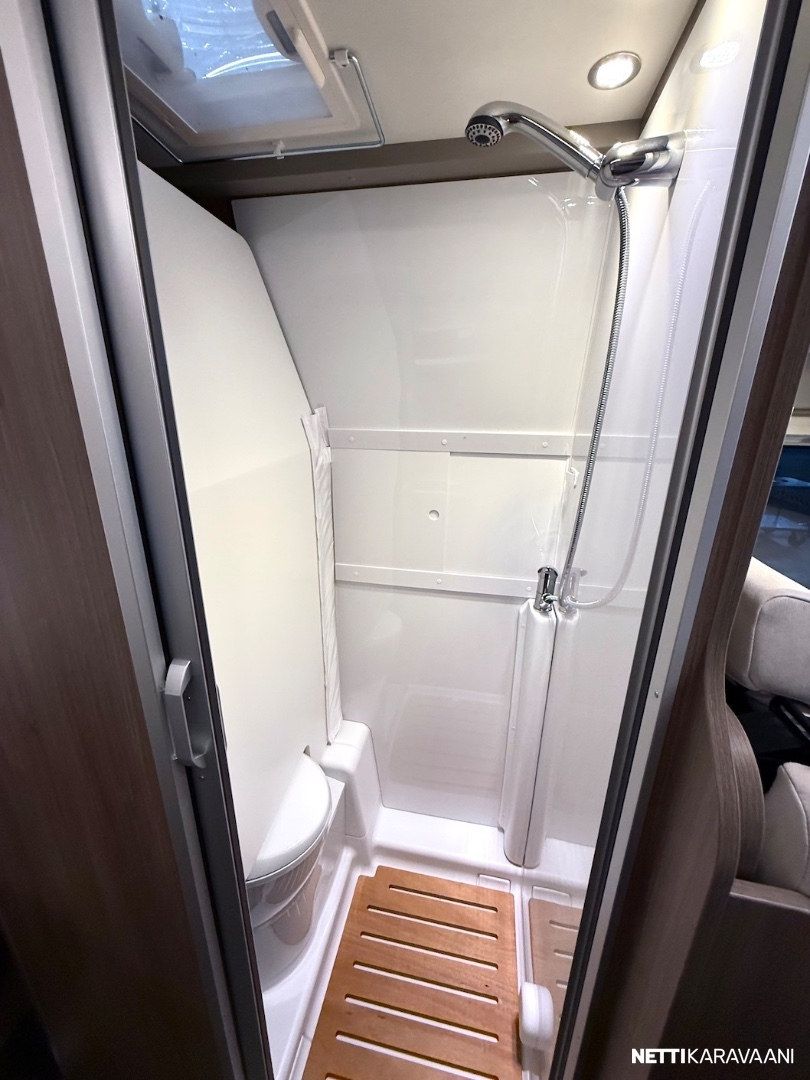 Uudistusten myötä, nerokas Vario -kylpyhuone jossa kääntyvä suihkumoduuli ja rulo-ovi, sekä avarrettu ohjaamon katto uudella leveällä panoraamaikkunalla!