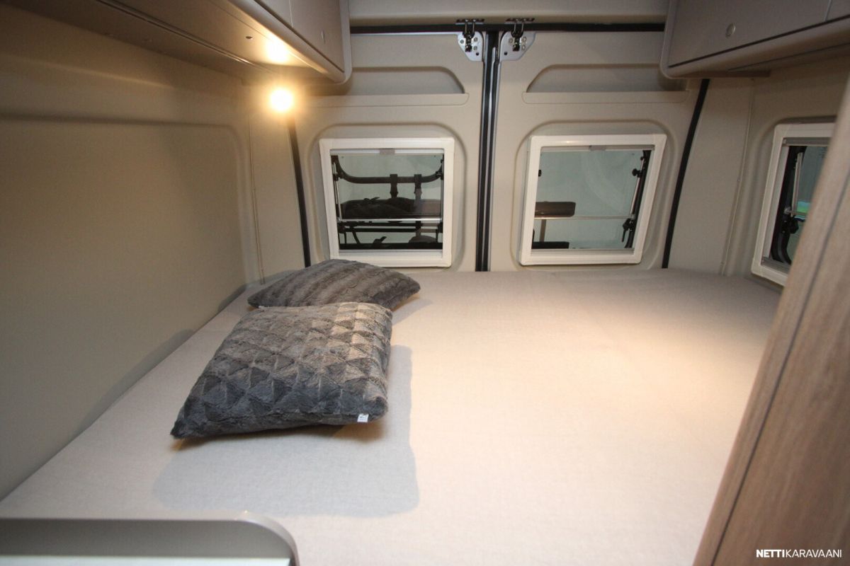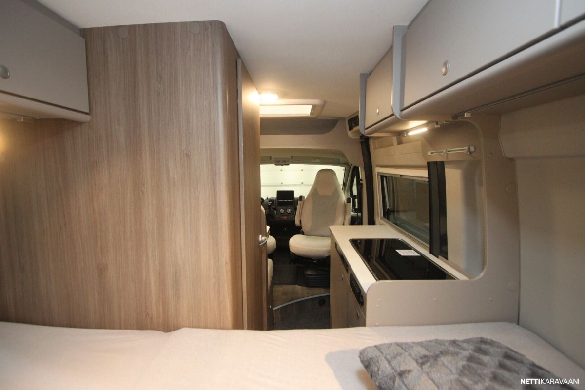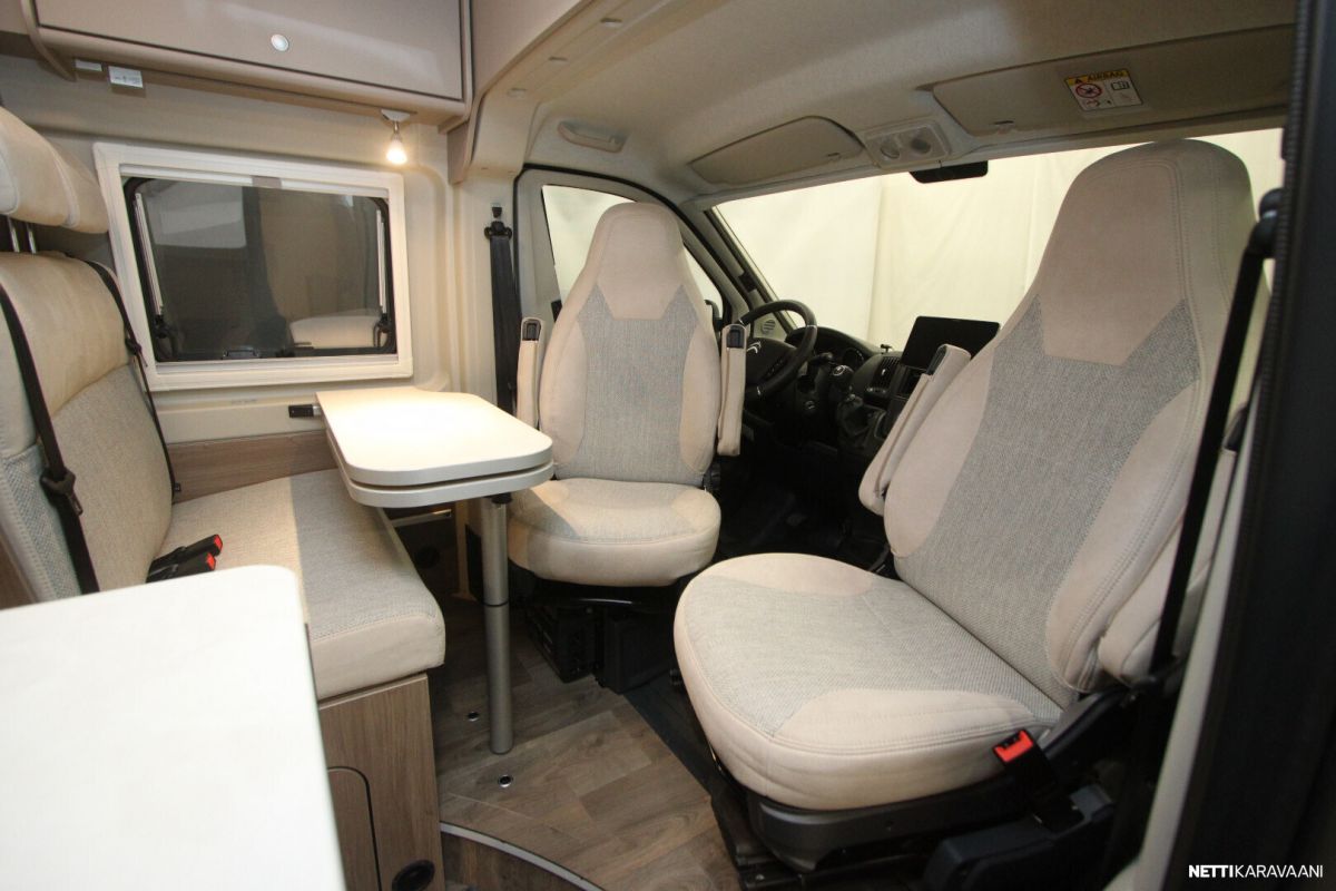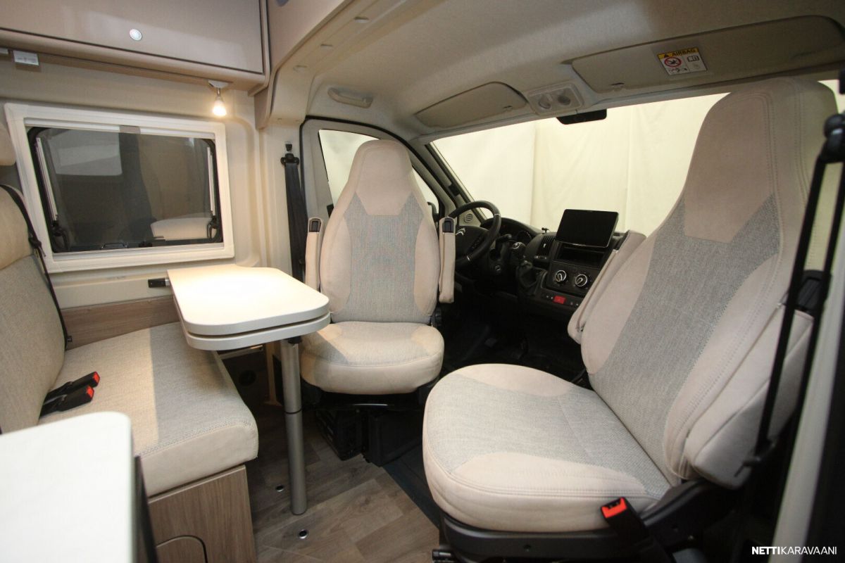 Ajotietokone, Jääkaappi, Kasetti WC, Kasettiverhot, Keskuslukitus: Kaukosäätöinen, Liesi, Lämminvesiboileri, Markiisi, Navigaattori, Ohjaustehostin, Pakastelokero, Pesuallas, Pysäköintikamera, Suihku, Sähkökäyttöiset ikkunat, Sähköpeilit, Vakionopeudensäädin, ABS-jarrut, Airbag, Käynnistyksenesto, Erikoisvanteet, Huoltokirja, Kattoluukku, Pyöräteline, Sähkörappu, Trumatic, Turbo, Aurinkopaneeli, TV-antenni tai lautasantenni, Eristetty harmaavesisäiliö, Lohkolämmitin