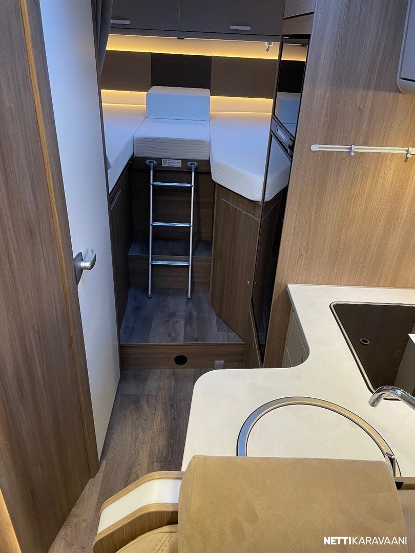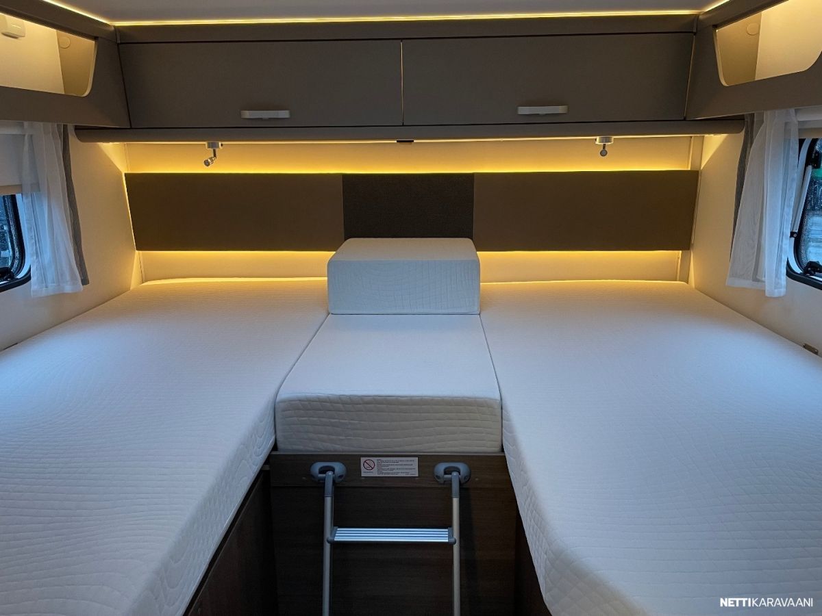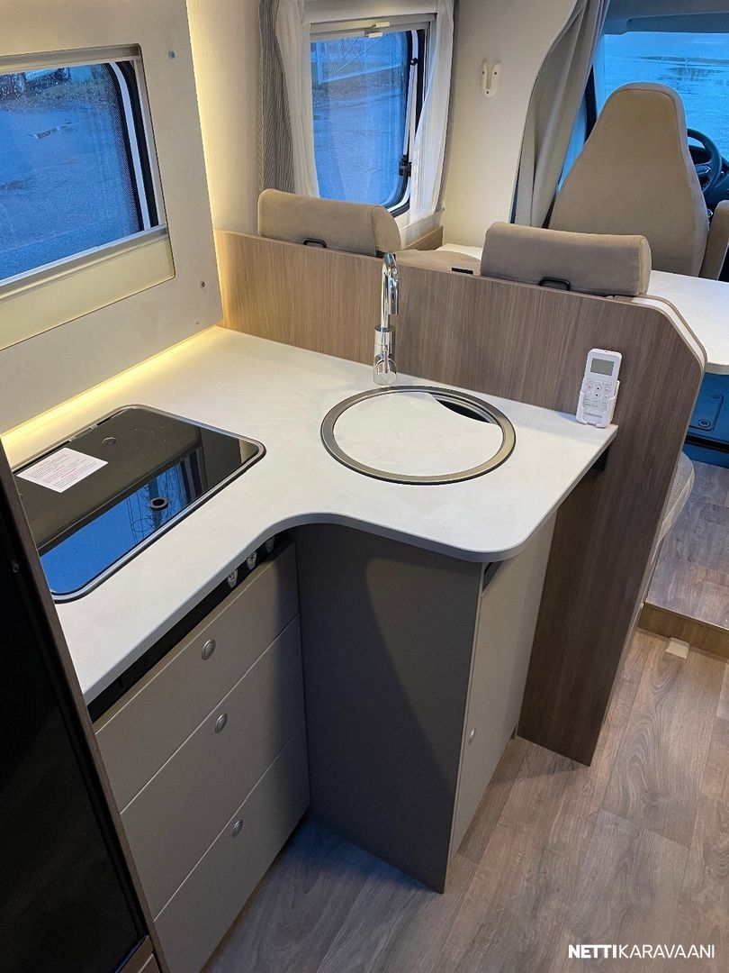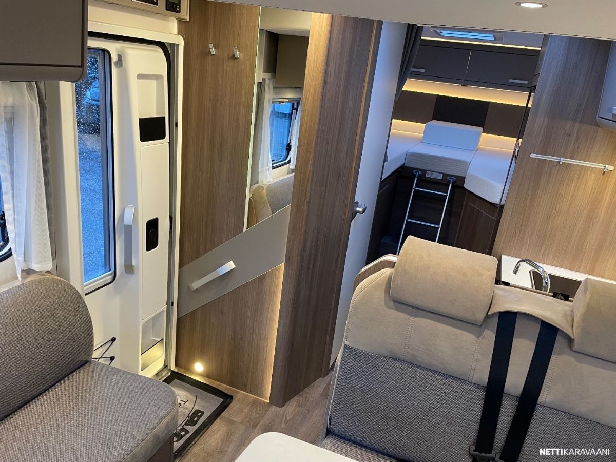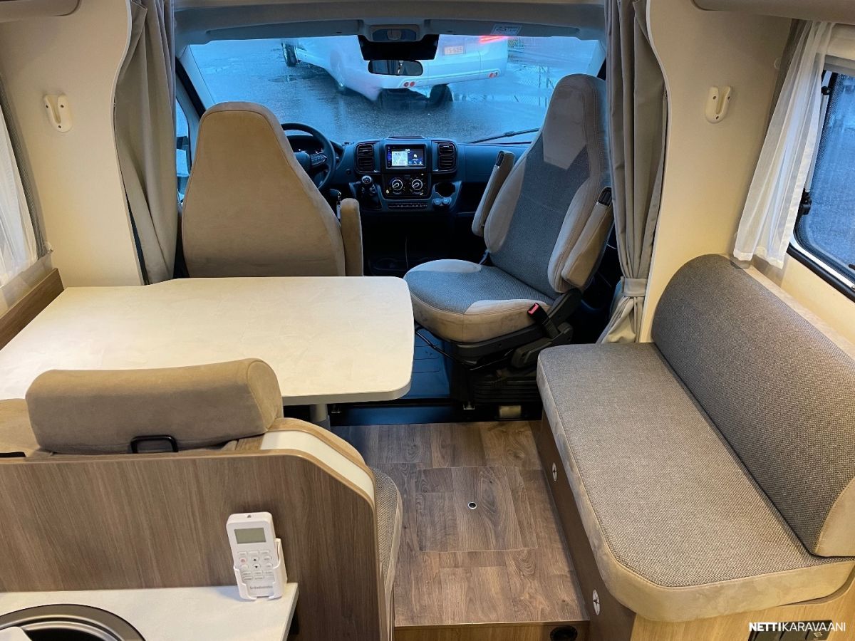 Ajotietokone, Jääkaappi, Kasetti WC, Kasettiverhot, Keskuslukitus: Kaukosäätöinen, Lattiamatot asunto-osassa, Liesi, Lämminvesiboileri, Markiisi, Navigaattori, Ohjaustehostin, Pakastelokero, Pesuallas, Pysäköintikamera, Suihku, Sähkökäyttöiset ikkunat, Sähköpeilit, Vakionopeudensäädin, ABS-jarrut, Airbag, Kattoluukku, Lattialämmitys, Sähköpatruuna, Sähkörappu, Trumatic