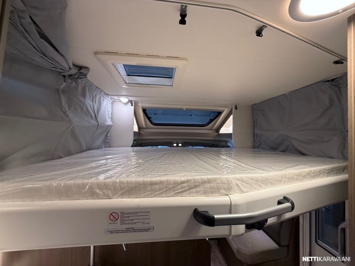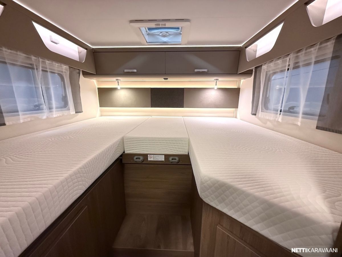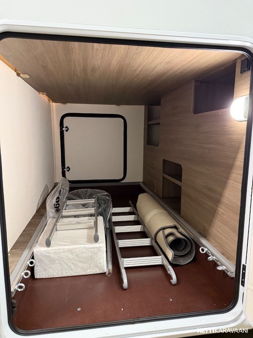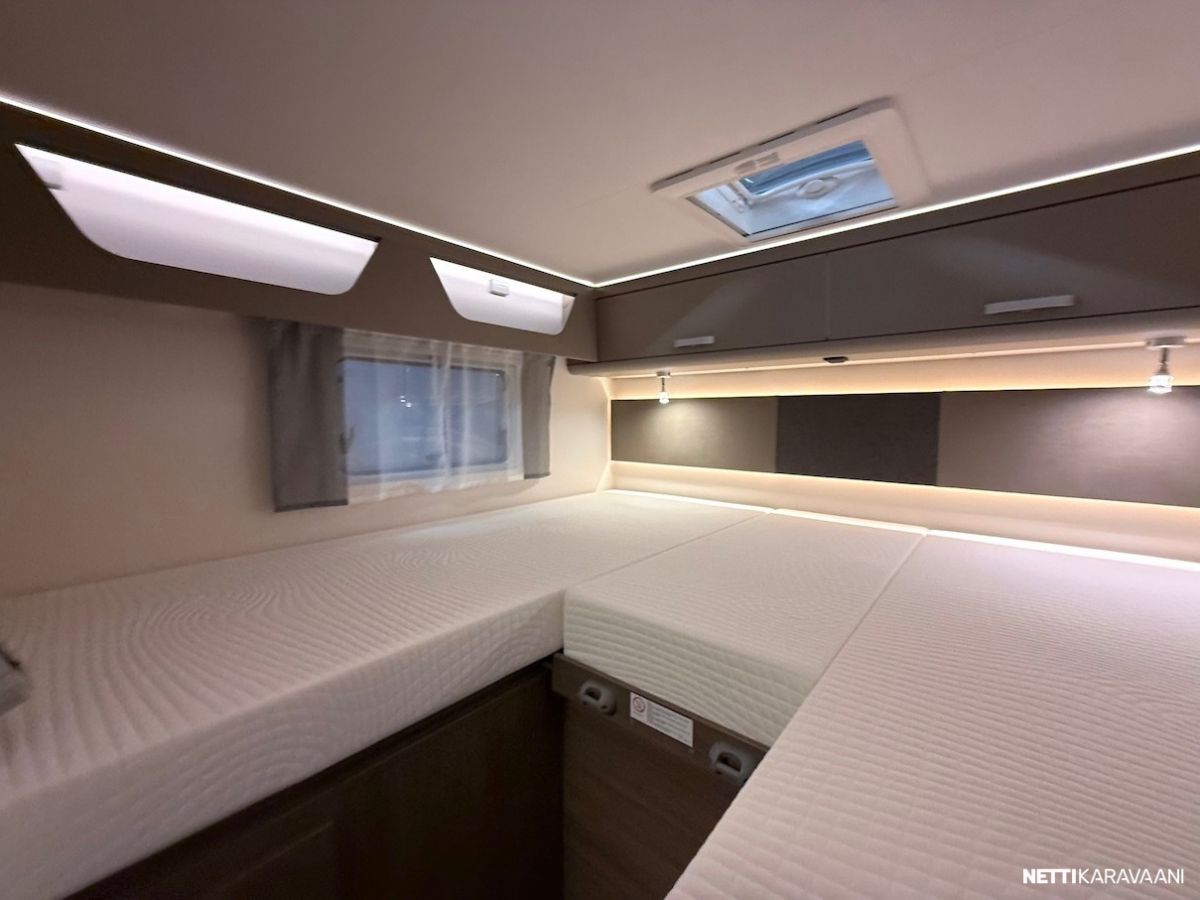 Alle 7 metrin mittaisena, järkevät tilat, alaslaskettava nostovuode ja Pro+ -varustelussa oleelliset varusteet vakiona!