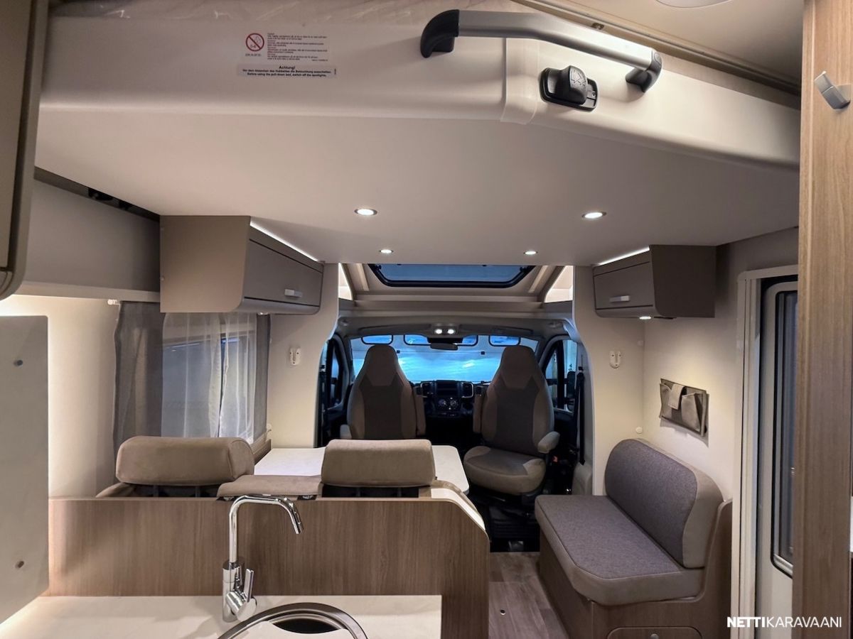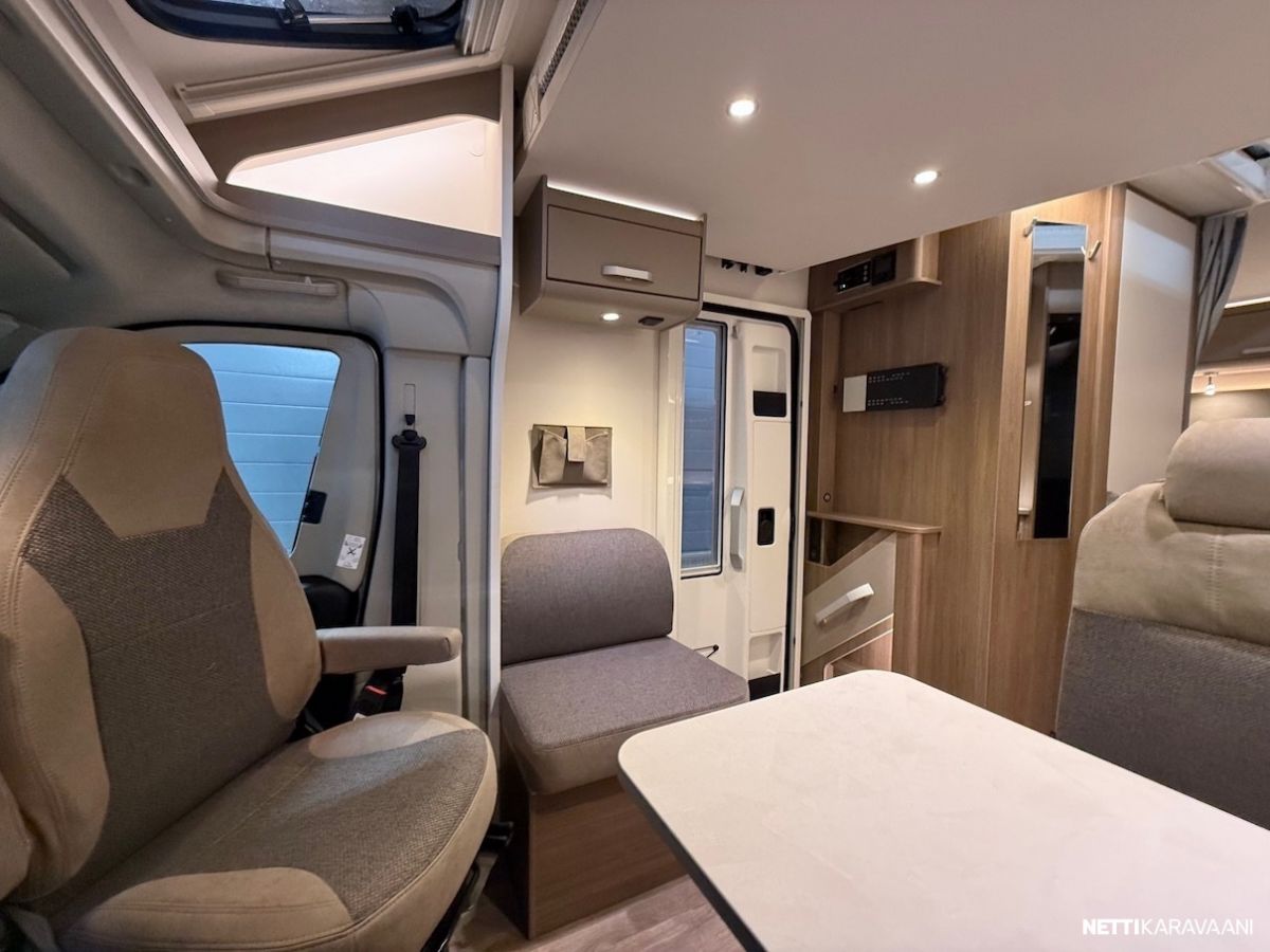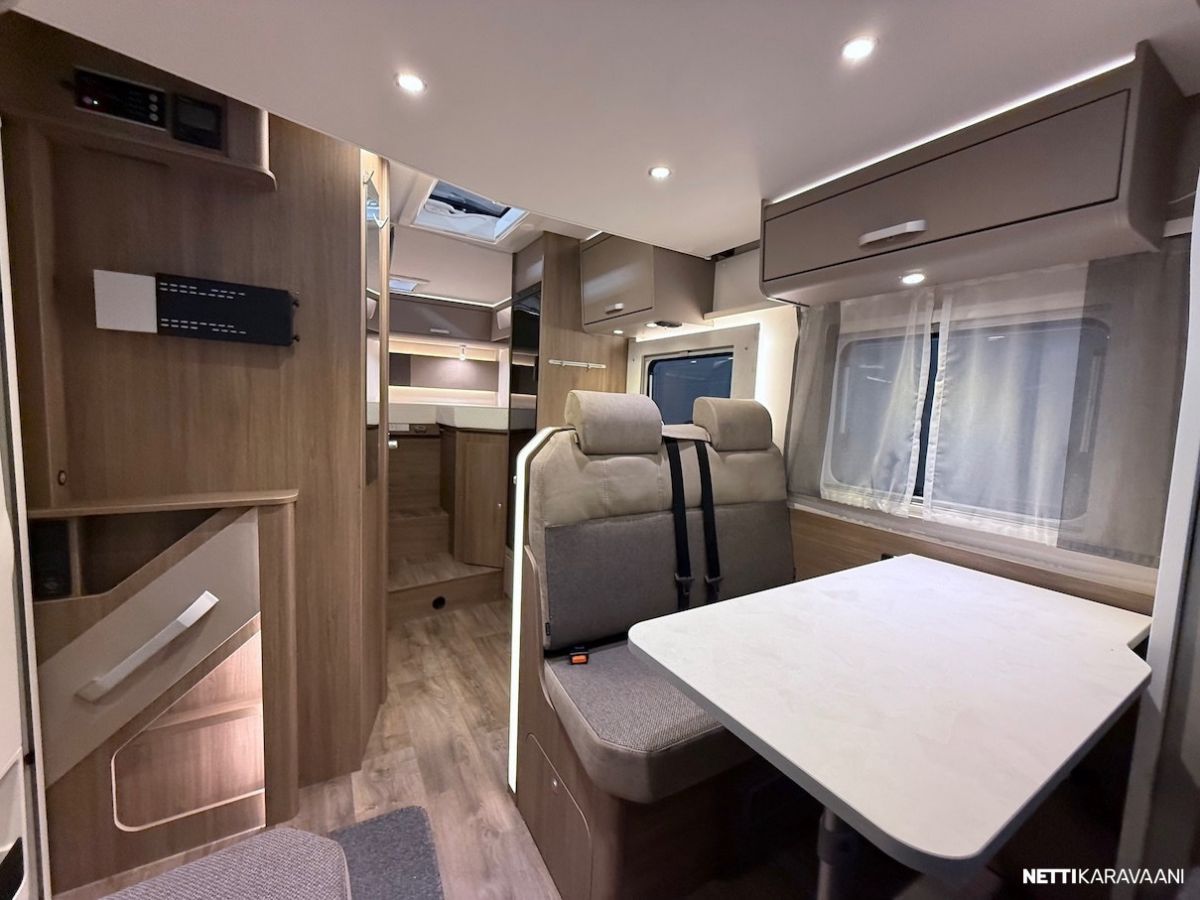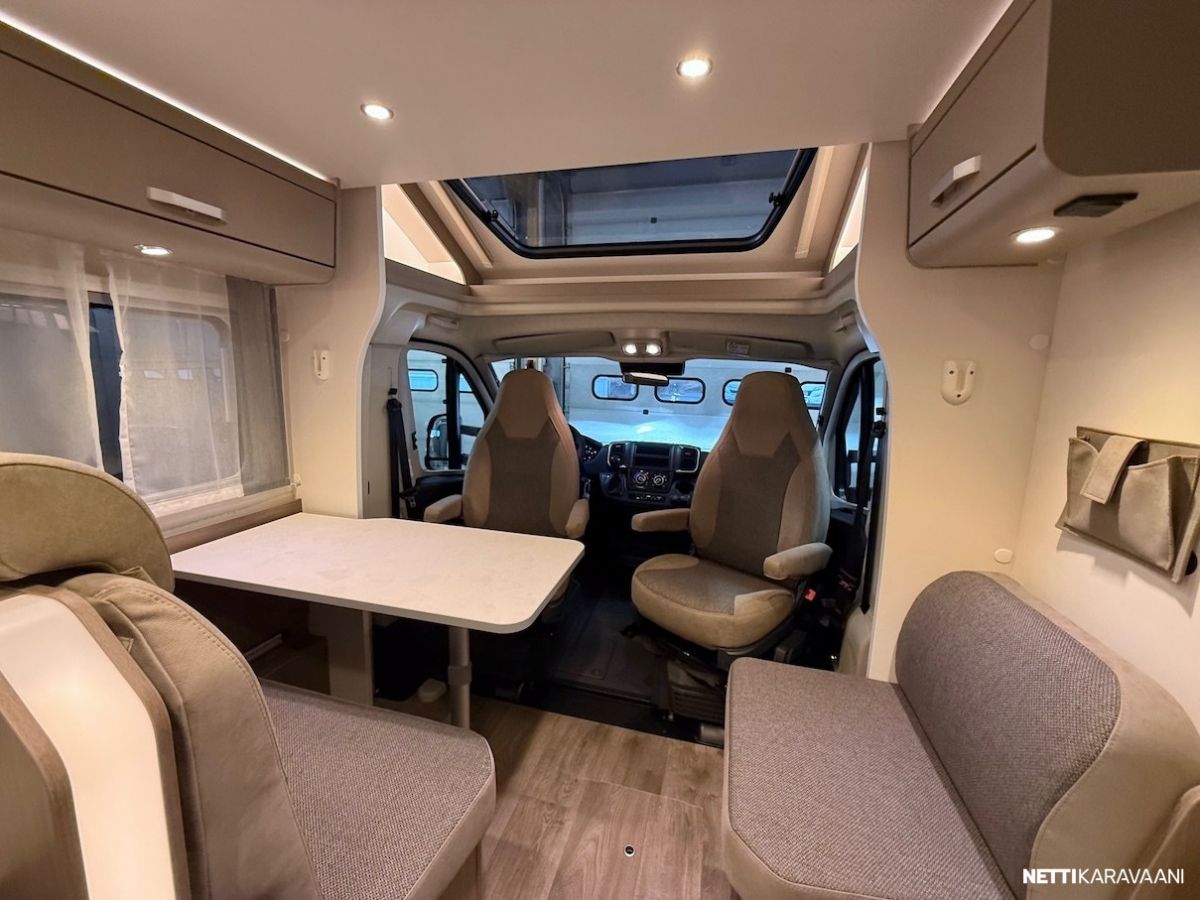 Ajotietokone, Jääkaappi, Kasetti WC, Kasettiverhot, Lattiamatot asunto-osassa, Liesi, Lämminvesiboileri, Markiisi, Ohjaustehostin, Pakastelokero, Pesuallas, Suihku, Sähkökäyttöiset ikkunat, Sähköpeilit, Vakionopeudensäädin, ABS-jarrut, Airbag, Ajonvakautusjärjestelmä, Luistonesto, Sumuvalot, Erikoisvanteet, Eristetty harmaavesisäiliö, Kattoluukku, Lattialämmitys, Sähköpatruuna, Sähkörappu, Trumatic, Turbo