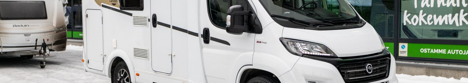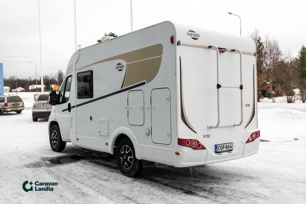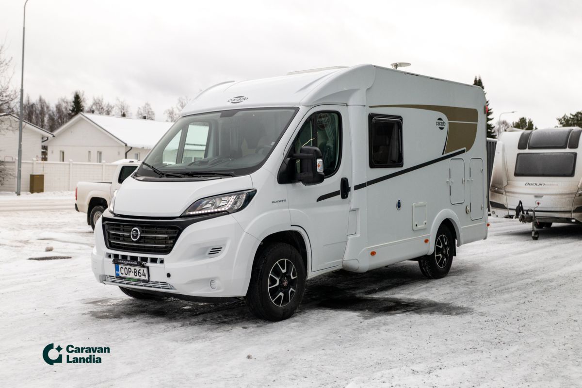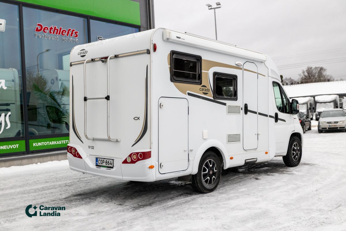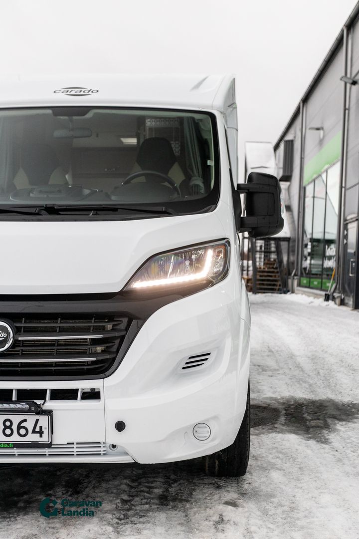 TÄHÄN AJONEUVOON KILPAILUKYKYINEN KORKO! - Carado V 132 on täydellinen valinta sinulle, joka etsit helppoa ja ketterää matkailuautoa ilman kompromisseja. ## VAIN TÄHÄN AJONEUVOON JÄÄTÄVÄ 0,99 % RAHOITUSKORKO + KULUT ## Tämä matkakumppani tarjoaa vapauden tunteen ja mahdollistaa vaivattoman matkanteon niin kaupungissa kuin luonnon helmassa. Tämän puoli-integroidun matkailuauton kompakti koko tekee ajamisesta ja pysäköinnistä helppoa. Tilankäyttö on kuitenkin todella fiksua: takaosassa on tilava poikittainen parivuode, joka takaa hyvät yöunet. Edessä on viihtyisä istuinryhmä ja toimiva keittiö, jotka tekevät matka-arjesta sujuvaa. Carado V 132 on luotettava ja monipuolinen valinta, joka tarjoaa erinomaisen hinta-laatusuhteen. Luontomatkailijoille Pariskunnille LED-päiväajovalot LED-lisävalopaneeli Lohkolämmitin Markiisi Start & Stop Hyttysverkko ovi Kasettiverhot Peruutuskamera Multimediakeskus Navigointijärjestelmä Automaattivaihteisto Driving Mode Selection - ajotilan valinta Ilmastointi ajotilassa Luistonestojärjestelmä Lukkiutumattomat jarrut (ABS) Keskuslukitus Sähkökäyttöiset ikkunat Sähköpeilit Turbo Vakionopeudensäädin Aurinkopaneeli Sivusohva Iso kattoikkuna Truma Sähköpatruuna Lämminvesiboileri Lattialämmitys Sähkörappu Sivukeittiö Jääkaappi Pakastelokero Kaasuliesi Parivuode Lisävuode istuinryhmästä Kasetti WC Pesuallas Suihku Takatalli TV-teline TV-antenni tai lautasantenni PP-Teline Meiltä voit ostaa etänä vaikka kotisohvaltasi! Kokeile kuinka helppoa ja vaivatonta matkailuajoneuvon ostaminen on.