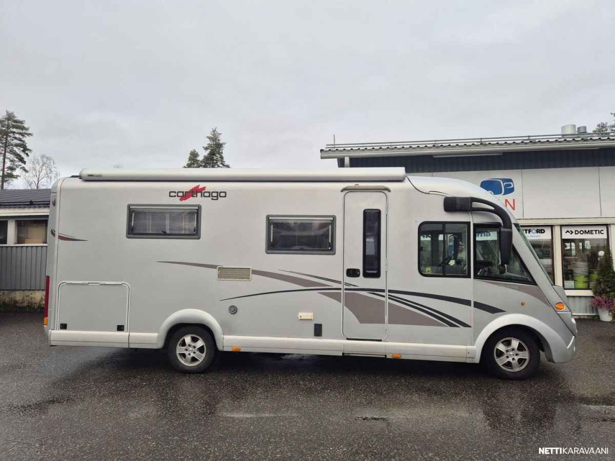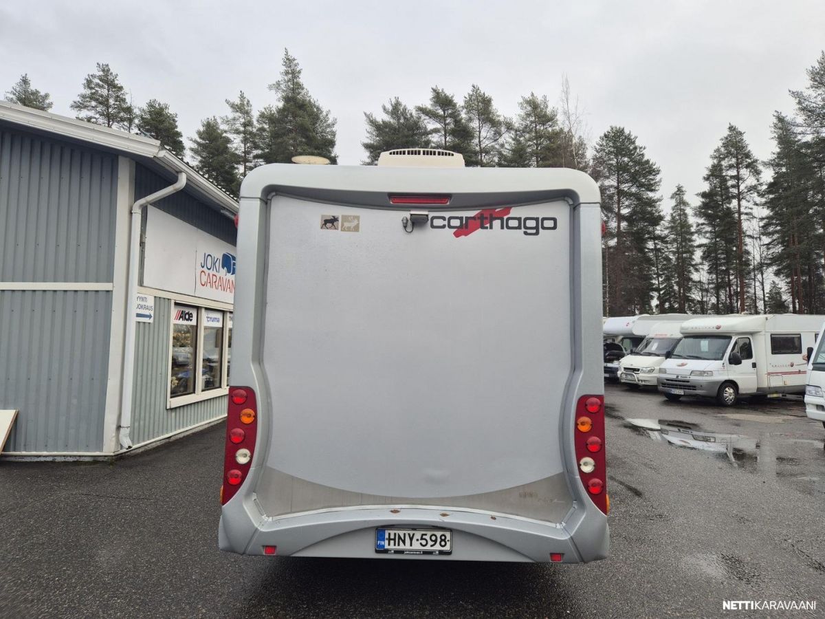 Carthago on tunnettu tinkimättömästä laadustaan ja ajattomasta tyylikkyydestään. Auton takaosassa kookas saarekevuode ja tilava takatalli, jonne ovet molemmin puolin autoa. Keskiosassa wc/suihku. Vastapuolella keittiö isolla jääkaapilla, jossa erillinen pakastelokero. Edessä tilava pöytäryhmä, johon käännät ohjaamon istuimet lisäistuimiksi. Pöytäryhmän päällä laskuvuode, jossa nukkuu mukavasti kaksi ihmistä. Truma-ilmakeskuslämmitys.