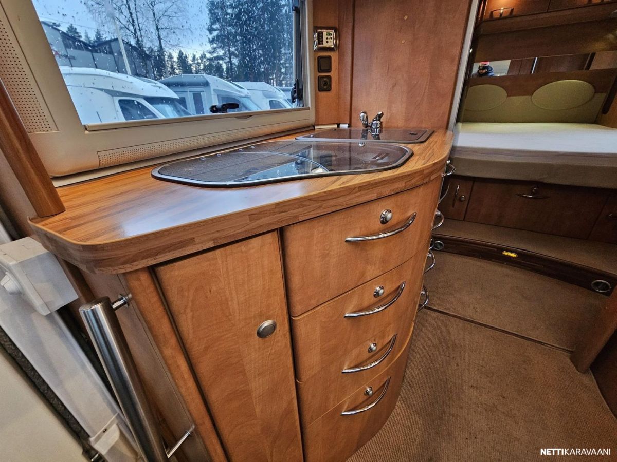 Ohjaustehostin, Airbag, Huoltokirja, Käynnistyksenesto, Kattoluukku, Vakionopeudensäädin, Polttoainekäyttöinen lisälämmitin, Ajotietokone, Navigaattori, Sumuvalot, Trumatic, Kasetti WC, Suihku, Lämminvesiboileri, Markiisi, TV-antenni tai lautasantenni, Liesi, Jääkaappi, Pakastelokero, Kasettiverhot, Lattiamatot asunto-osassa, Sähkörappu, Sähköpatruuna, Pysäköintikamera, Ilmastointi: Manuaalinen, Radio