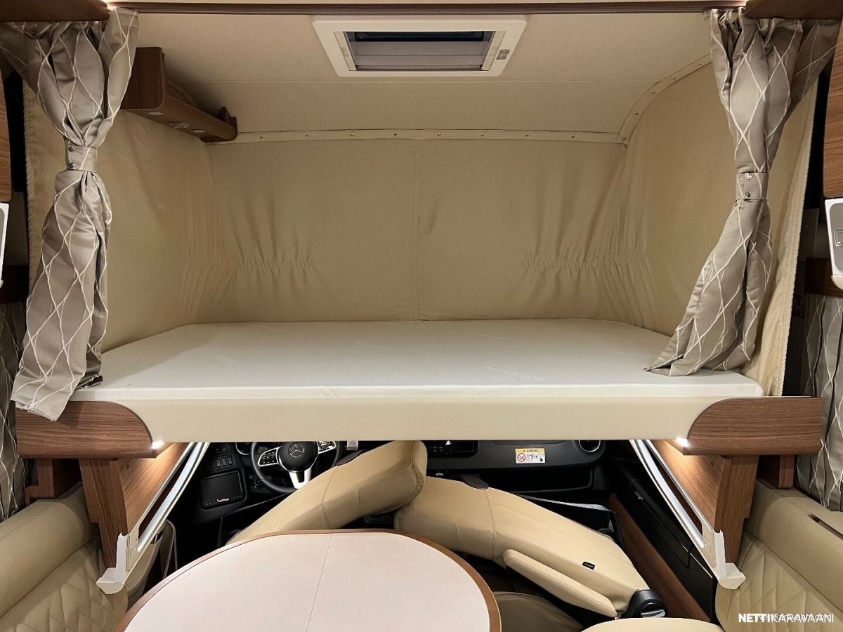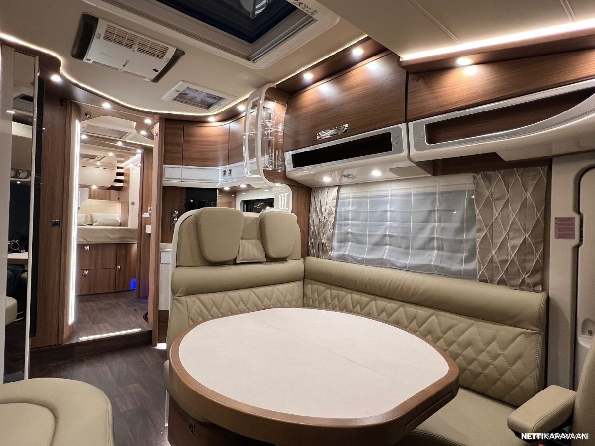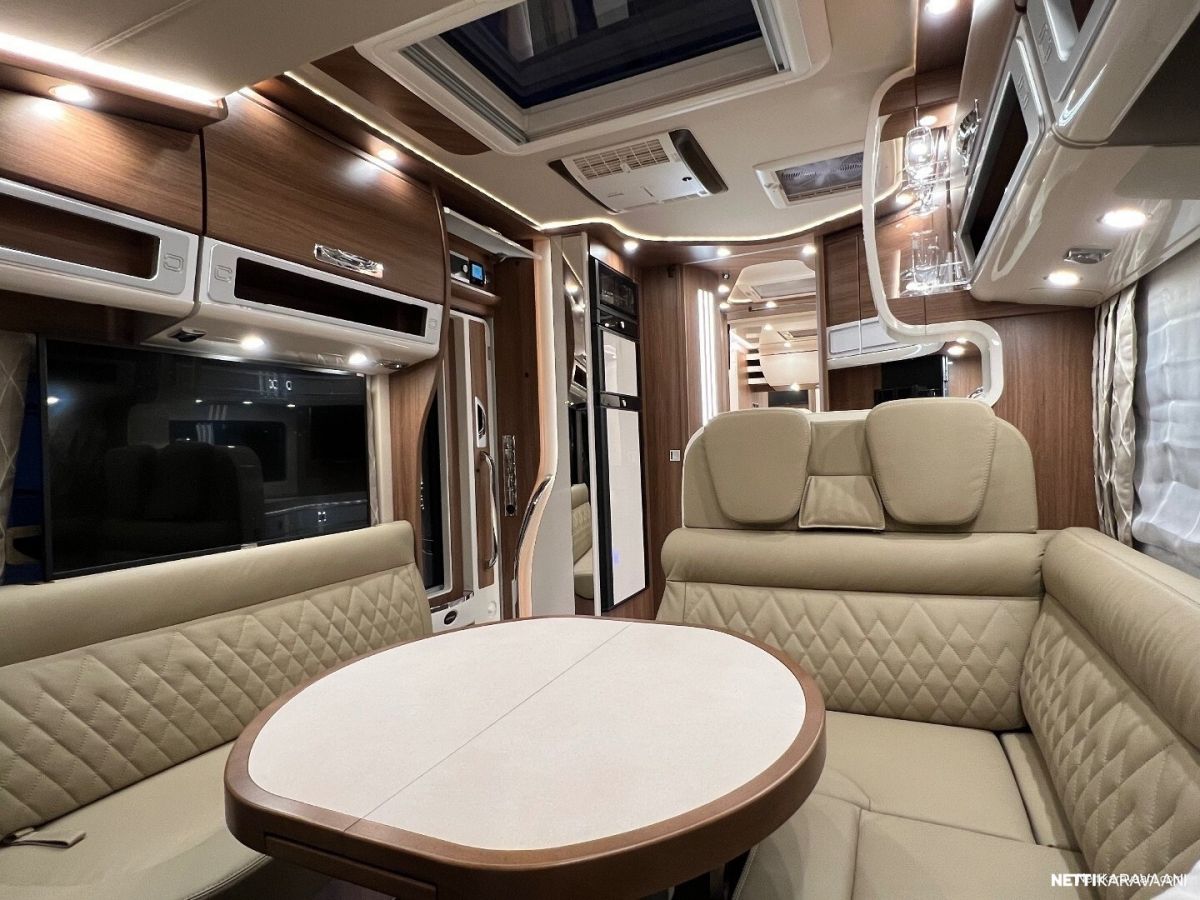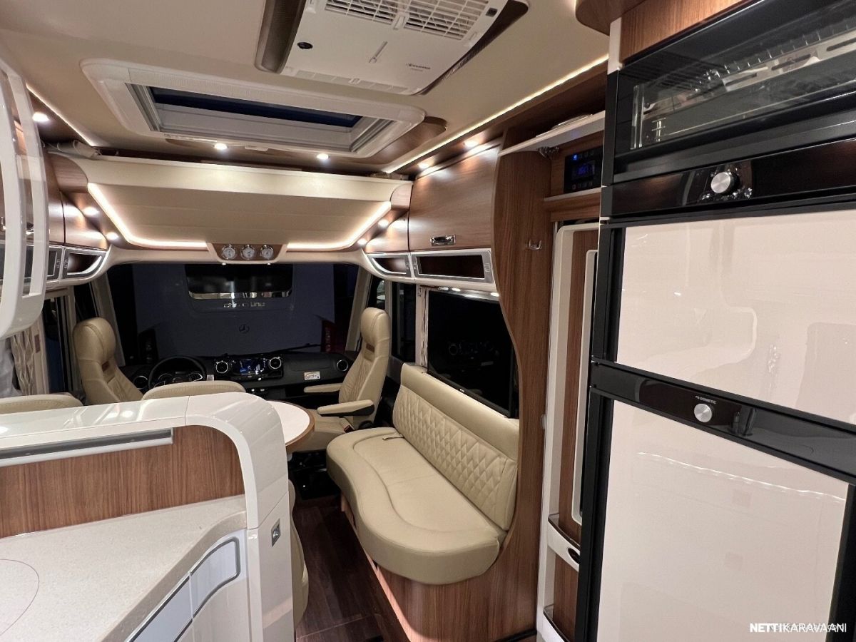 Ajotietokone, Jääkaappi, Kaasu-uuni, Kasetti WC, Kasettiverhot, Keskuslukitus: Kaukosäätöinen, Lattiamatot asunto-osassa, Liesi, Lämminvesiboileri, Markiisi, Nahkasisusta, Navigaattori, Ohjaustehostin, Pakastelokero, Pesuallas, Pysäköintikamera, Suihku, Sähkökäyttöiset ikkunat, Sähköpeilit, Vakionopeudensäädin, ABS-jarrut, Airbag, Ajonvakautusjärjestelmä, Käynnistyksenesto, Luistonesto, Alde, Erikoisvanteet, Eristetty harmaavesisäiliö, Kattoluukku, Lattialämmitys, Sähköpatruuna, Sähkörappu, Tukijalat, Tuplapohja, Turbo