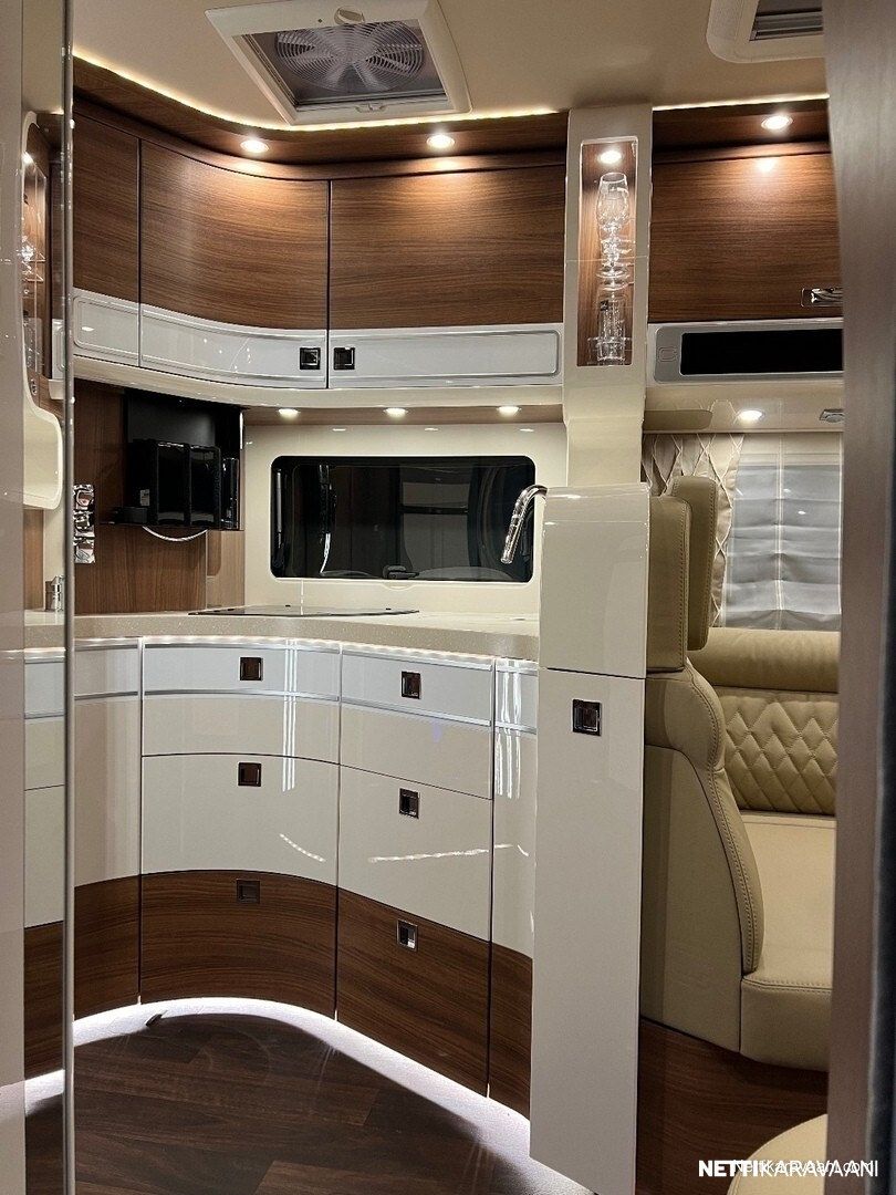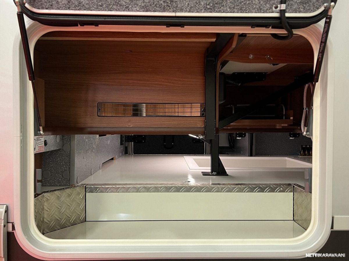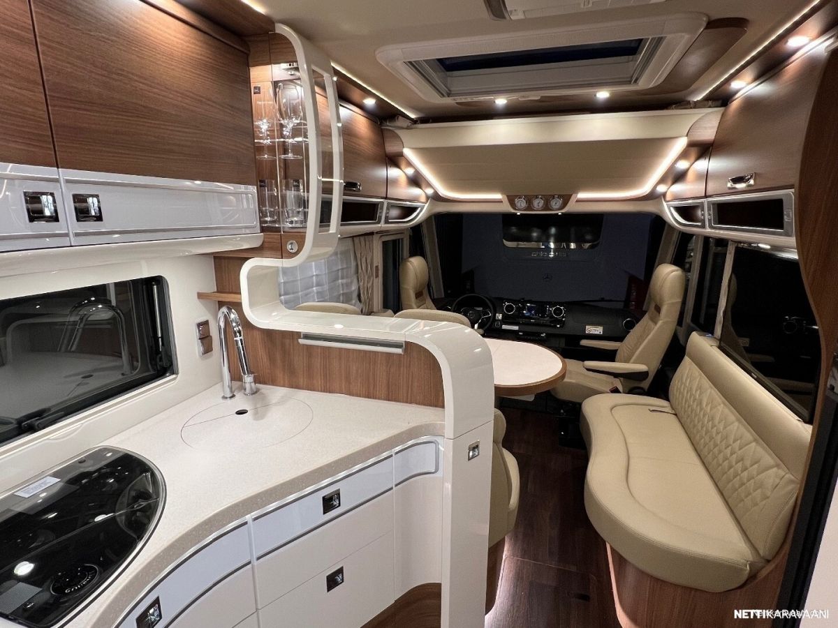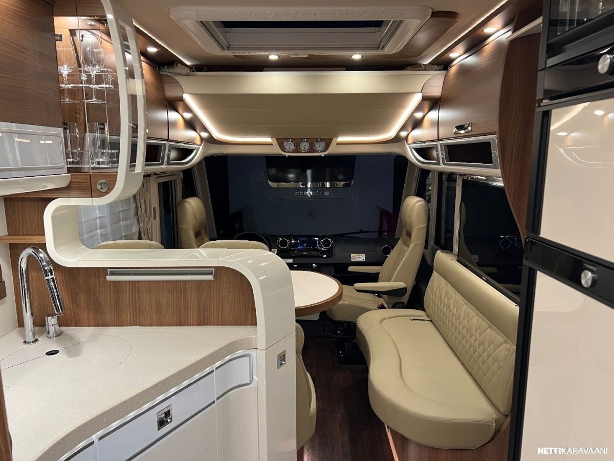Ajotietokone, Jääkaappi, Kaasu-uuni, Kasetti WC, Kasettiverhot, Keskuslukitus: Kaukosäätöinen, Lattiamatot asunto-osassa, Liesi, Lämminvesiboileri, Markiisi, Nahkasisusta, Navigaattori, Ohjaustehostin, Pakastelokero, Pesuallas, Pysäköintikamera, Suihku, Sähkökäyttöiset ikkunat, Sähköpeilit, Vakionopeudensäädin, ABS-jarrut, Airbag, Ajonvakautusjärjestelmä, Käynnistyksenesto, Luistonesto, Alde, Erikoisvanteet, Eristetty harmaavesisäiliö, Kattoluukku, Lattialämmitys, Sähköpatruuna, Sähkörappu, Tukijalat, Tuplapohja, Turbo