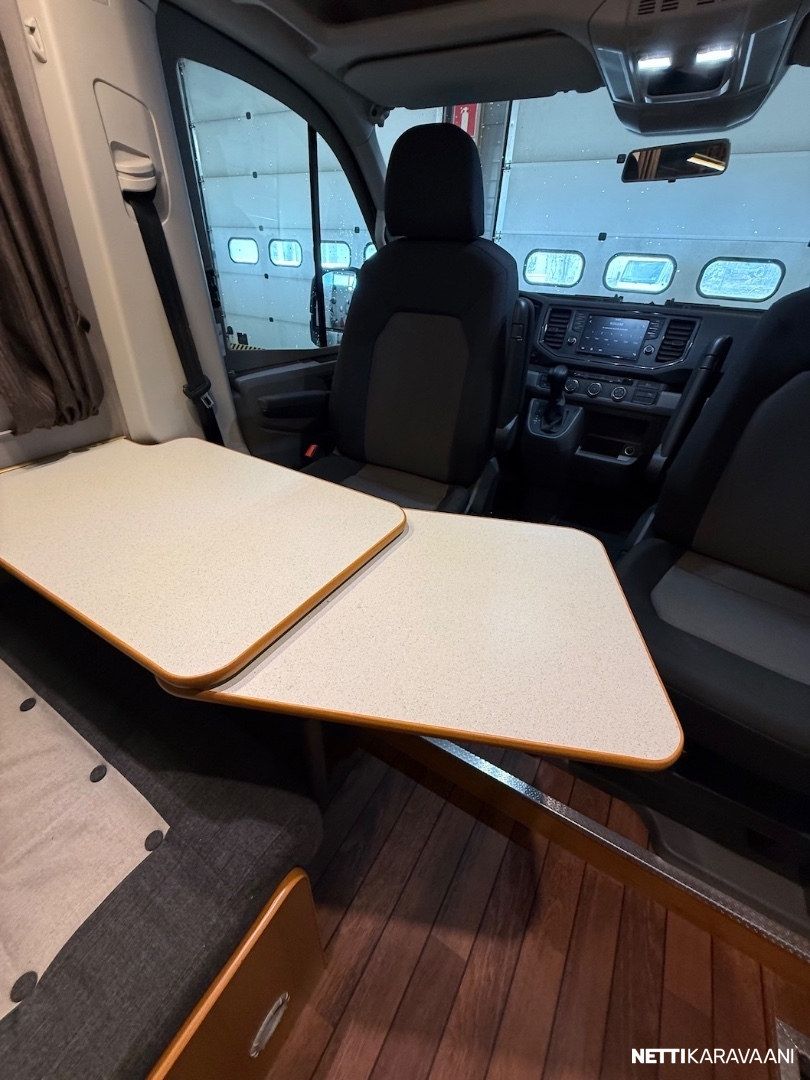 Tehokas 180 hv moottori, 8-vaihteinen automaattivaihteisto, adaptiivinen vakionopeudensäädin, nahkainen lämmitettävä monitoimiratti, penkinlämmitykset, lämmitettävä tuulilasi, Diesel -käyttöinen seisontalämmitin, Volkswagen Navigointi ja peruutuskamera, peruutustutkat edessä ja takana, sähkökäyttöinen sivuliukuovi kaukosäätimellä, hopea metalliväri, tehokas 6 kw Truma Diesel -keskuslämmitys 1,8 kw sähkövastuksella, aurinkopaneelijärjestelmä, asuinosan tupla-akut, ohjaamon Remis -kaihdinverhot, mikrouuni, ulkosuihku tavaratilassa.