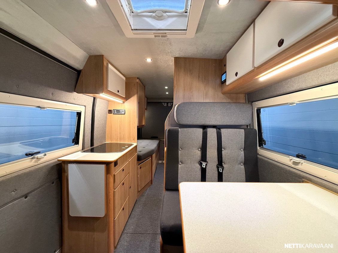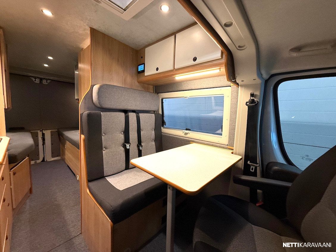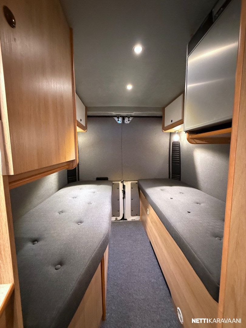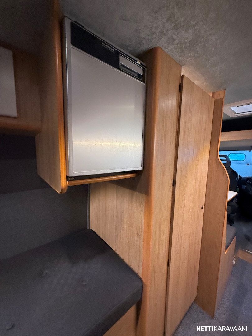 Matalat erillisvuoteet, 180 hv. -moottori, 9-vaihteinen automaattivaihteisto, Webasto -diesellämmitin, Fiat -ohjaamon ilmastointi, vakionopeudensäädin, sähkölasit ja -peilit, penkinlämmitys, kahdet renkaat, LED -päiväajovalot, Fiat -multimediasoitin peruutuskameralla, vetokoukku, Truma CombiE -puhallinlämmitys kaasulla ja sähköllä, kompressorijääkaappi, kasetti-wc.