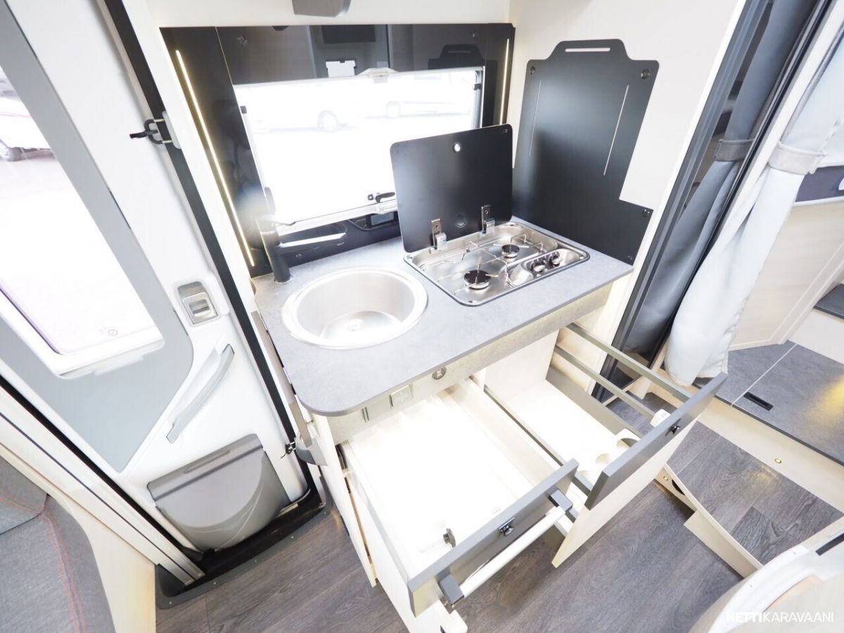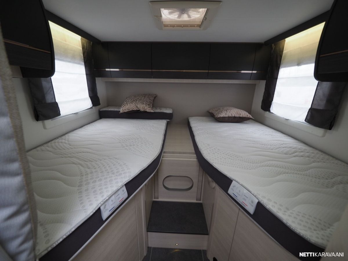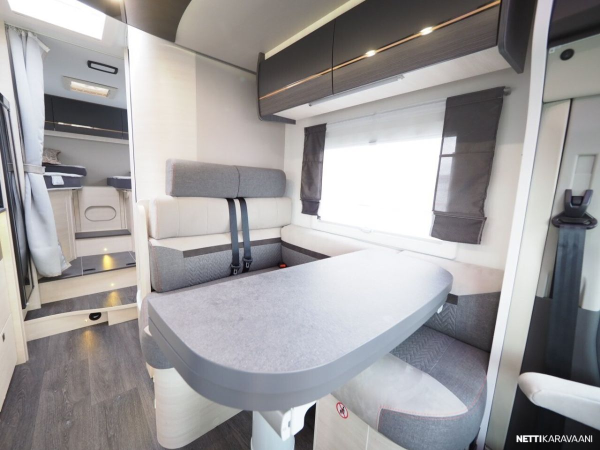 Ajotietokone, Jääkaappi, Kasetti WC, Kasettiverhot, Keskuslukitus: Kaukosäätöinen, Liesi, Lämminvesiboileri, Markiisi, Navigaattori, Ohjaustehostin, Pakastelokero, Pesuallas, Pysäköintikamera, Suihku, Sähkökäyttöiset ikkunat, Vakionopeudensäädin, ABS-jarrut, Airbag, Käynnistyksenesto, Aurinkopaneeli, Erikoisvanteet, Eristetty harmaavesisäiliö, Huoltokirja, Kattoluukku, Sähköpatruuna, Sähkörappu, Trumatic, Turbo