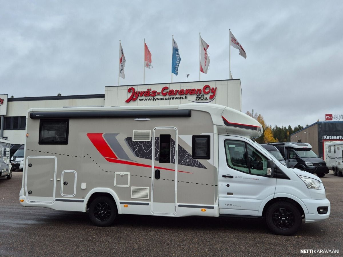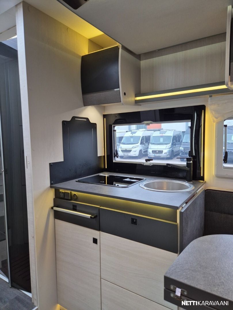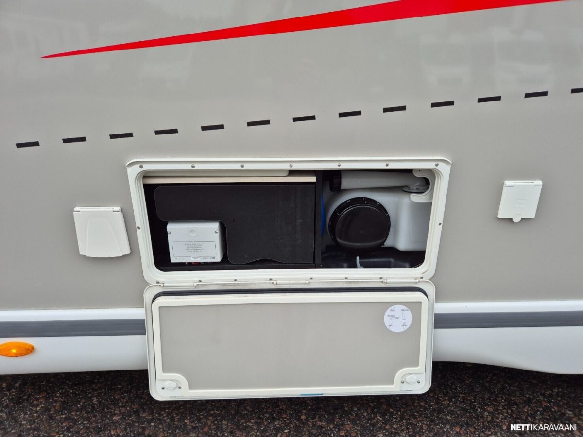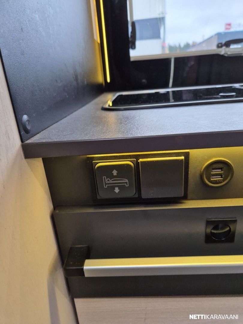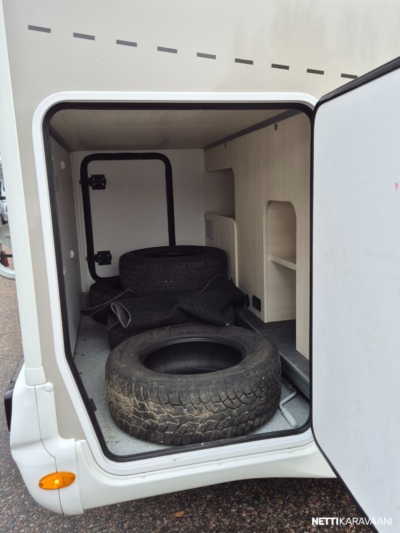 Ajotietokone, Ilmastointi: Manuaalinen, Jääkaappi, Kasetti WC, Kasettiverhot, Keskuslukitus: Kaukosäätöinen, Liesi, Markiisi, Ohjaustehostin, Pakastelokero, Pesuallas, Pysäköintikamera, Suihku, Vakionopeudensäädin, ABS-jarrut, Airbag, Ajonvakautusjärjestelmä, Luistonesto, Sumuvalot, Erikoisvanteet, Pyöräteline