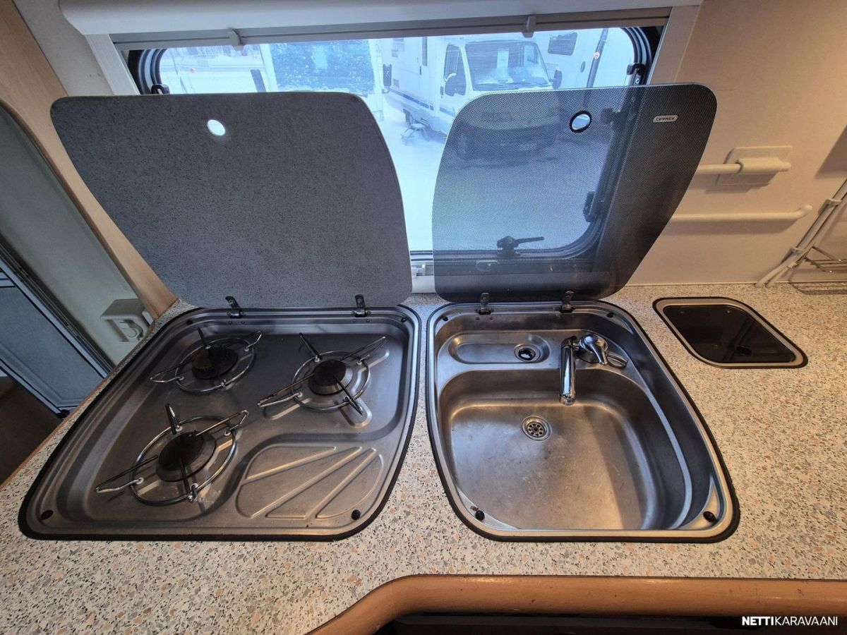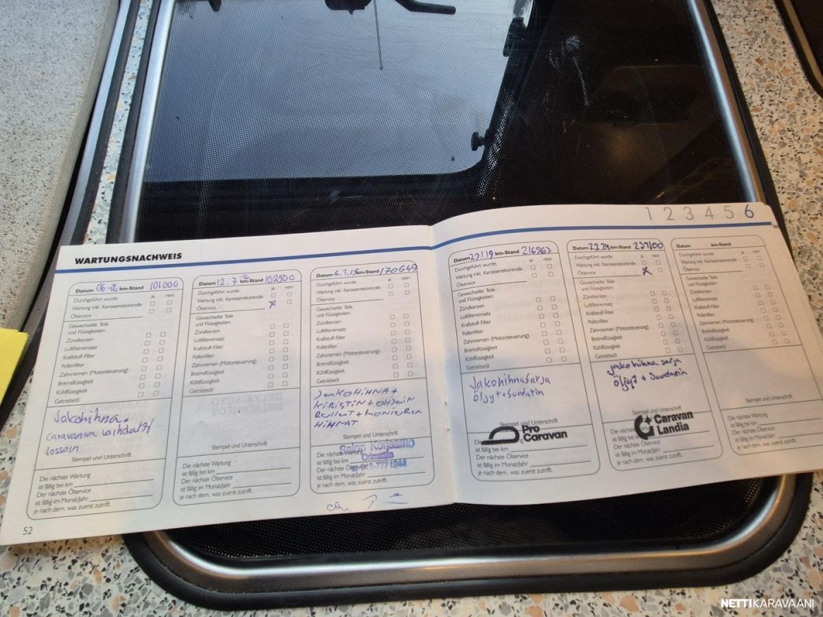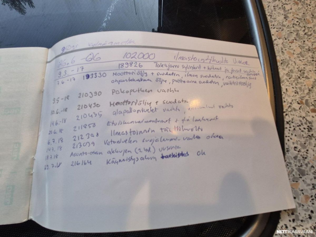 Erikoisvanteet, Kahdet renkaat, Huoltokirja, Kattoluukku, Turbo, Trumatic, Kasetti WC, Suihku, Lämminvesiboileri, Pyöräteline, Markiisi, Kattokaiteet/tikkaat, Liesi, Jääkaappi, Pakastelokero, Sähkörappu, Peräboxi, Pesuallas, Pysäköintikamera, Ilmastointi: Manuaalinen, Radio