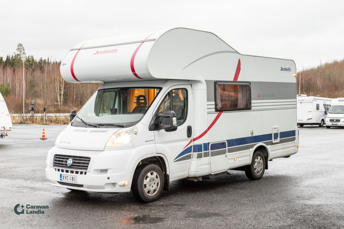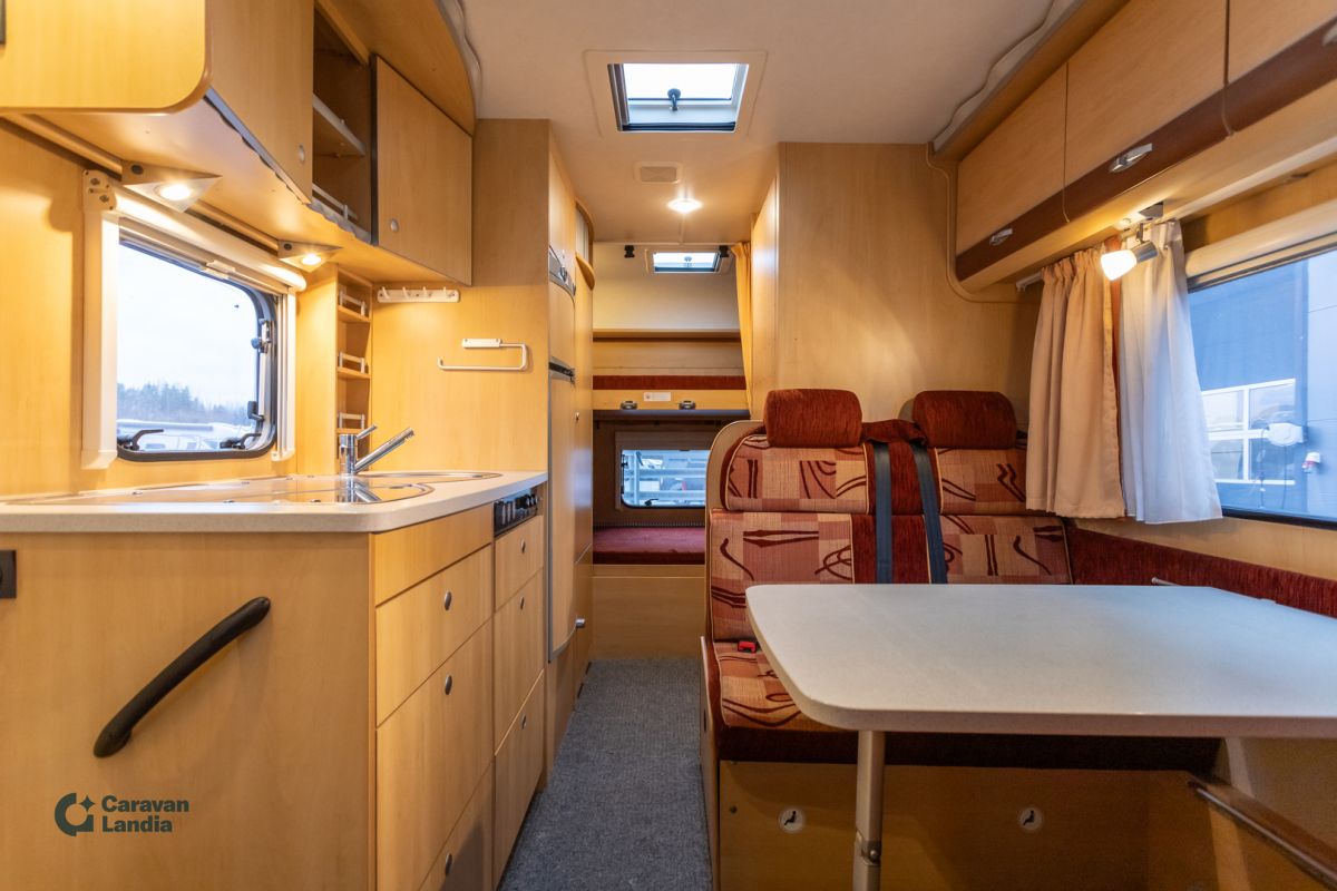 TÄHÄN AJONEUVOON KILPAILUKYKYINEN KORKO! - Tilava kerrosvuoteellinen alkovimallin auto Truma-lämmityksellä isommallekin porukalle. Erikoisvanteet Markiisi Pyöräteline Tukijalat Hyttysverkko ovi Peruutuskamera CD-soitin Luistonestojärjestelmä Lukkiutumattomat jarrut (ABS) Sähkökäyttöiset ikkunat Sähköpeilit Kattoluukku Iso pöytäryhmä Keskuslämmitys Truma Lämminvesiboileri Iso-jääkaappi Pakastelokero Liesi Kerrossänky Kasetti WC Pesuallas Suihku Takatalli TV-antenni tai lautasantenni Meiltä voit ostaa etänä vaikka kotisohvaltasi! Kokeile kuinka helppoa ja vaivatonta matkailuajoneuvon ostaminen on.