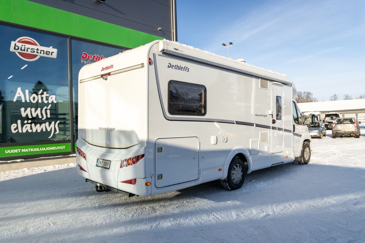 Tyylikäs erillisvuoteilla oleva avara Dethleffs kolmelle hengelle. Ilmajouset Markiisi Tukijalat Vetokoukku Hyttysverkko ovi Kasettiverhot Peruutuskamera CD-soitin Luistonestojärjestelmä Sähkökäyttöiset ikkunat Lukkiutumattomat jarrut (ABS) Sähköpeilit Vakionopeudensäädin SkyRoof Kattoluukku Aurinkopaneeli Ilmastointi asunto-osassa L-istuinryhmä Iso kattoikkuna Keskuslämmitys Nestekiertolämmitys Alde Sähköpatruuna Lämminvesiboileri Pullonvaihtaja Iso-jääkaappi Pakastelokero Liesi Erillisvuoteet Kasetti WC Pesuallas Erillinen suihku Takatalli TV-antenni tai lautasantenni Meiltä voit ostaa etänä vaikka kotisohvaltasi! Kokeile kuinka helppoa ja vaivatonta matkailuajoneuvon ostaminen on.