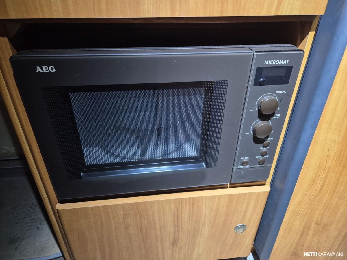 Kattoluukku, Kasetti WC, Suihku, Lämminvesiboileri, Liesi, Jääkaappi, Pakastelokero, Kasettiverhot, Tukijalat, Lattiamatot asunto-osassa, Pesuallas, Lattialämmitys, Sähköpatruuna, Alde, Radio