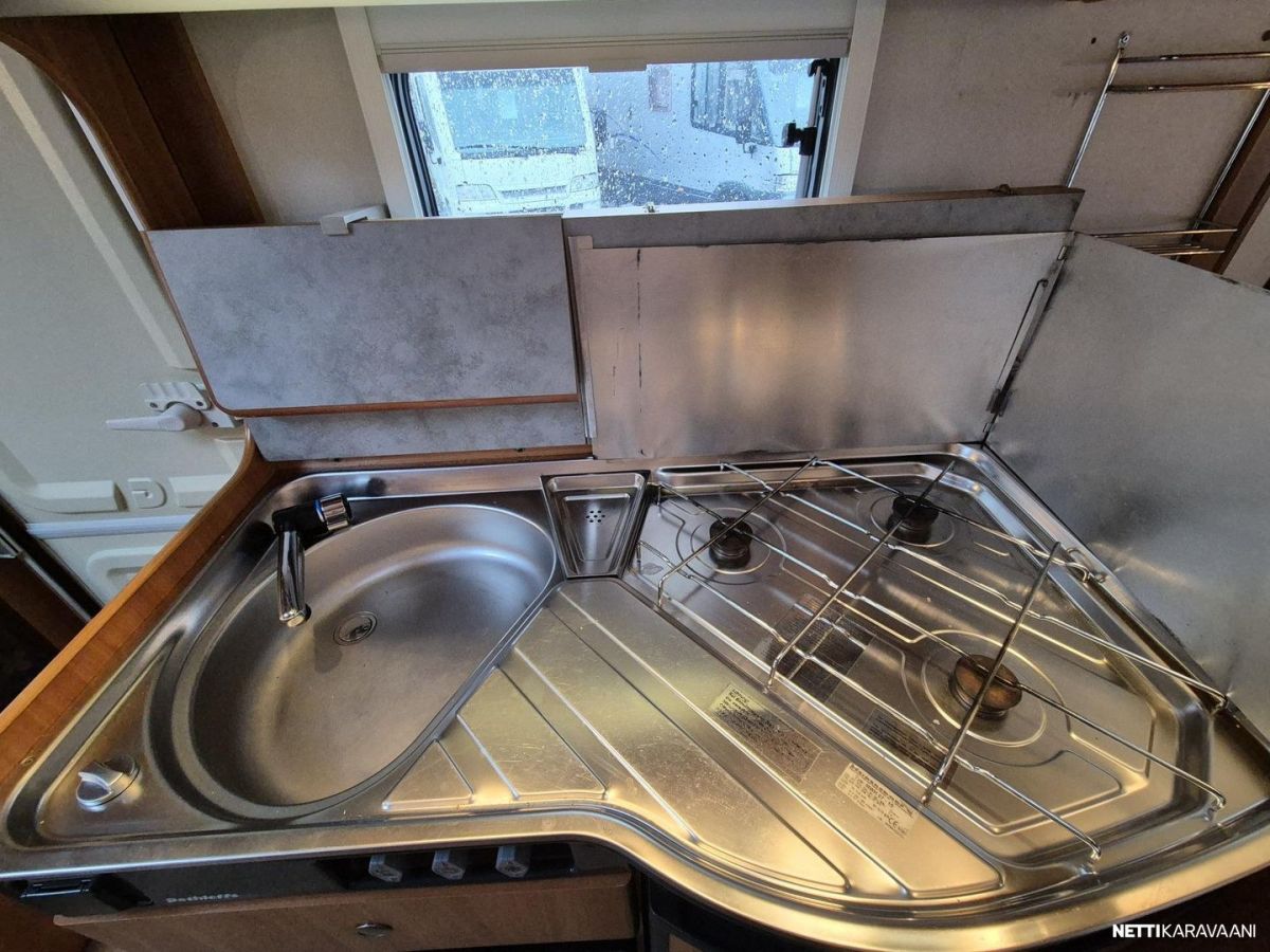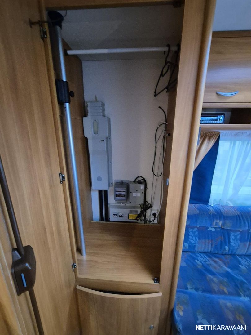 Kasetti WC, Suihku, Lämminvesiboileri, Liesi, Jääkaappi, Pakastelokero, Kasettiverhot, Tukijalat, Lattiamatot asunto-osassa, Pesuallas, Lattialämmitys, Sähköpatruuna, Alde, Radio