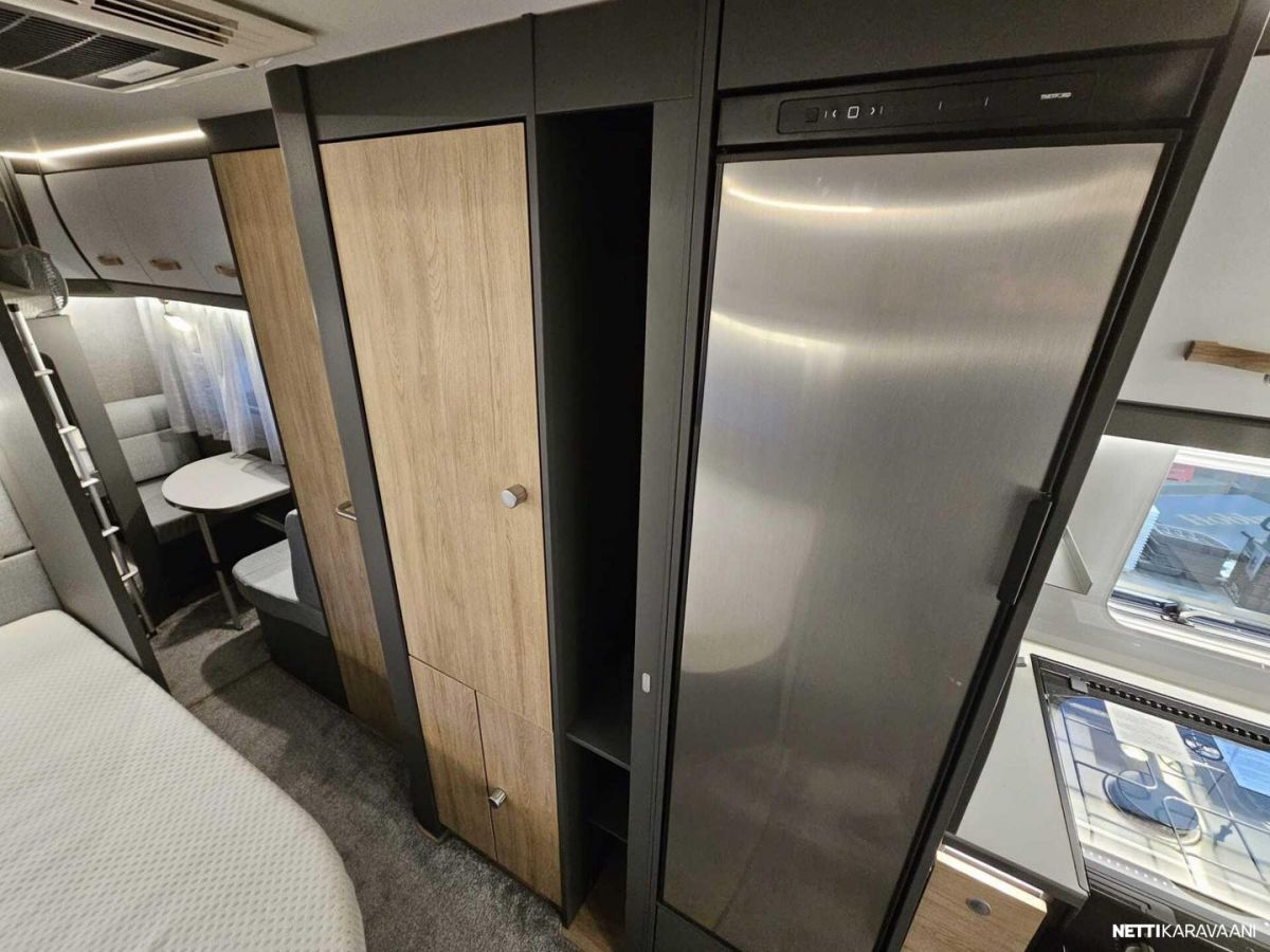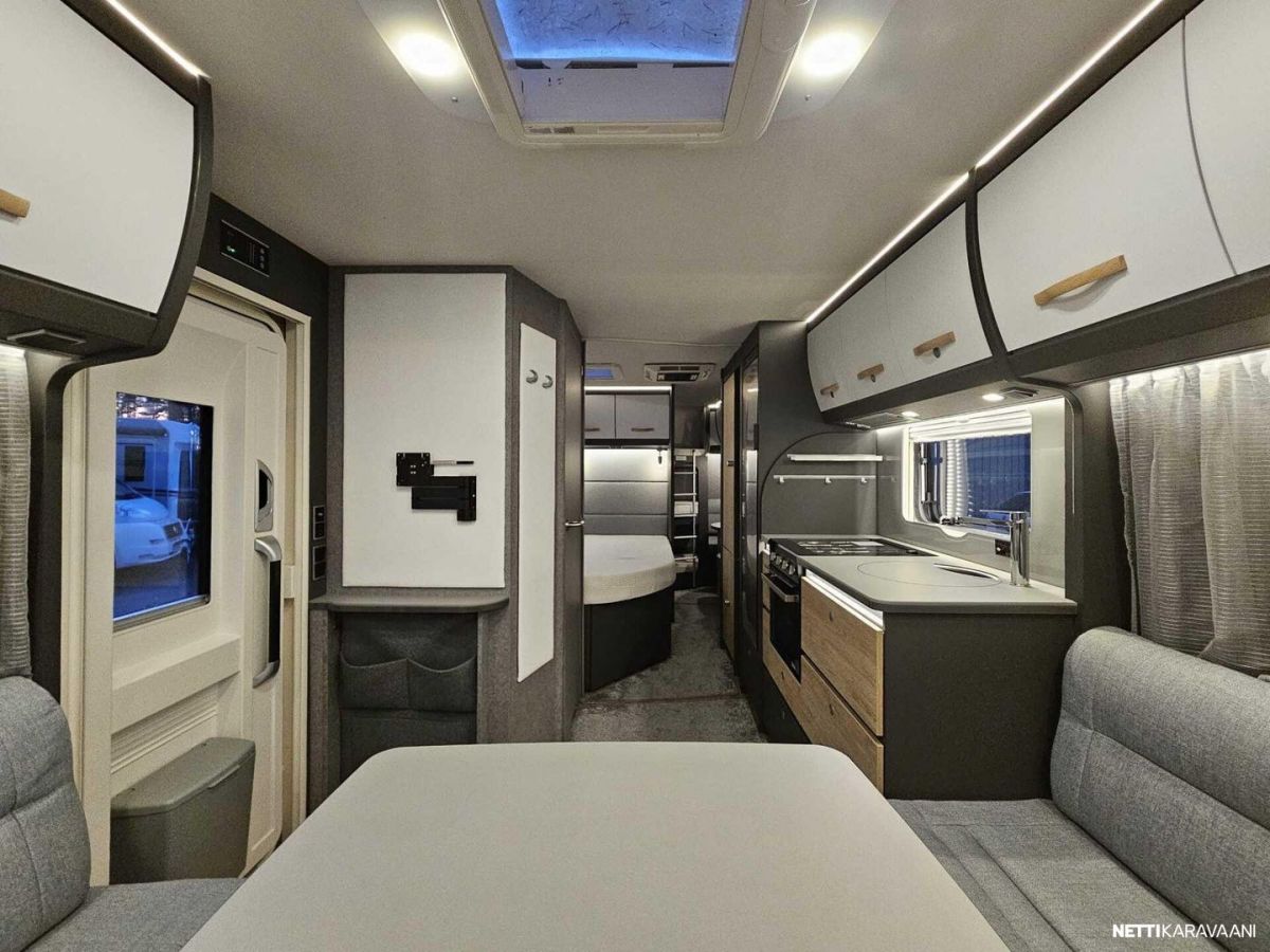 Kattoluukku, Kasetti WC, Lämminvesiboileri, Liesi, Jääkaappi, Pakastelokero, Kaasu-uuni, Eristetty harmaavesisäiliö, Kasettiverhot, Tukijalat, Lattiamatot asunto-osassa, Pesuallas, Lattialämmitys, Sähköpatruuna, Alde, Ilmastointi: Manuaalinen