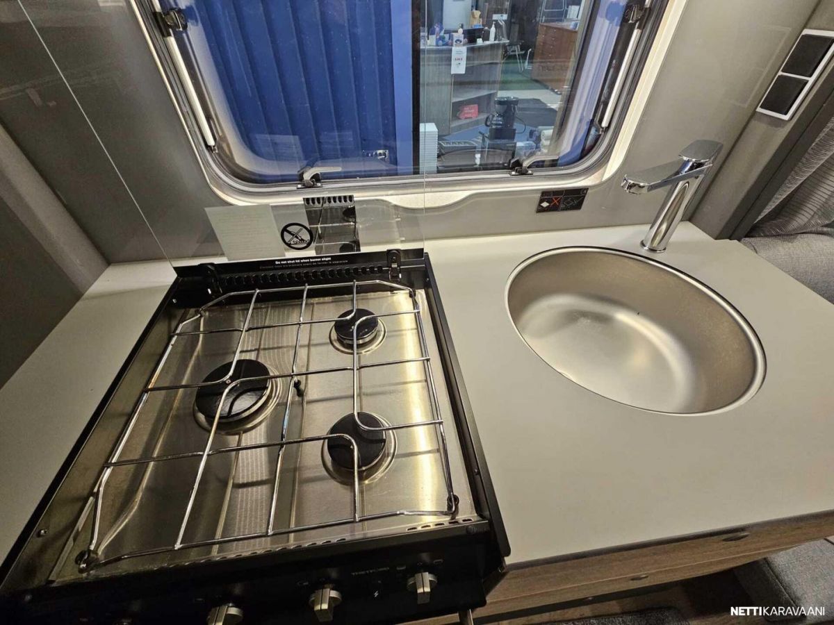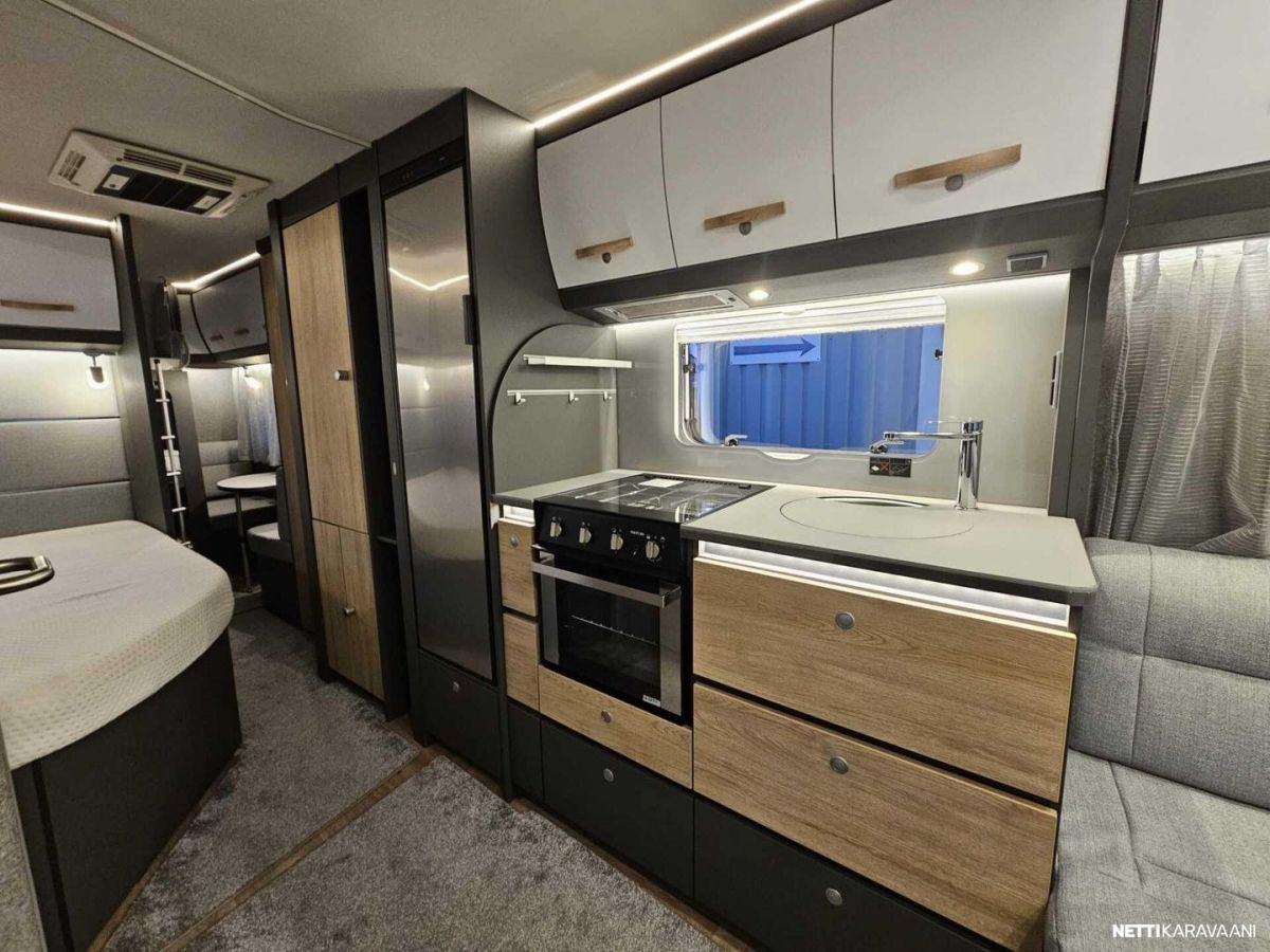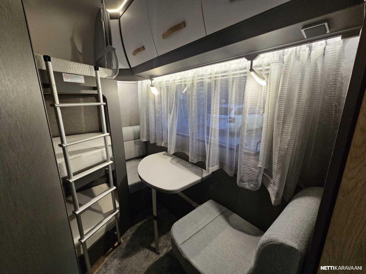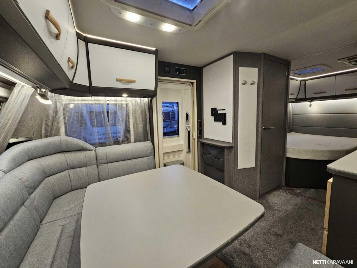 Kattoluukku, Kasetti WC, Lämminvesiboileri, Liesi, Jääkaappi, Pakastelokero, Kaasu-uuni, Eristetty harmaavesisäiliö, Kasettiverhot, Tukijalat, Lattiamatot asunto-osassa, Pesuallas, Lattialämmitys, Sähköpatruuna, Alde, Ilmastointi: Manuaalinen