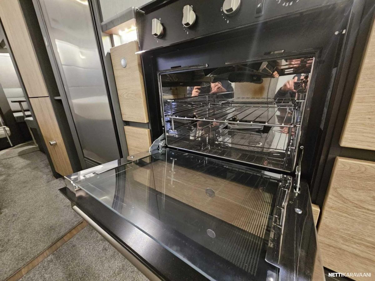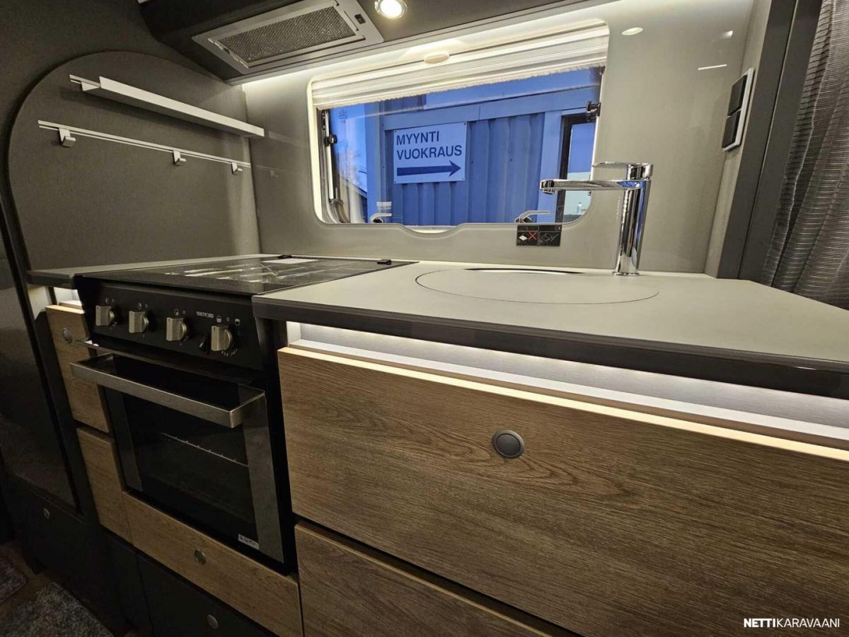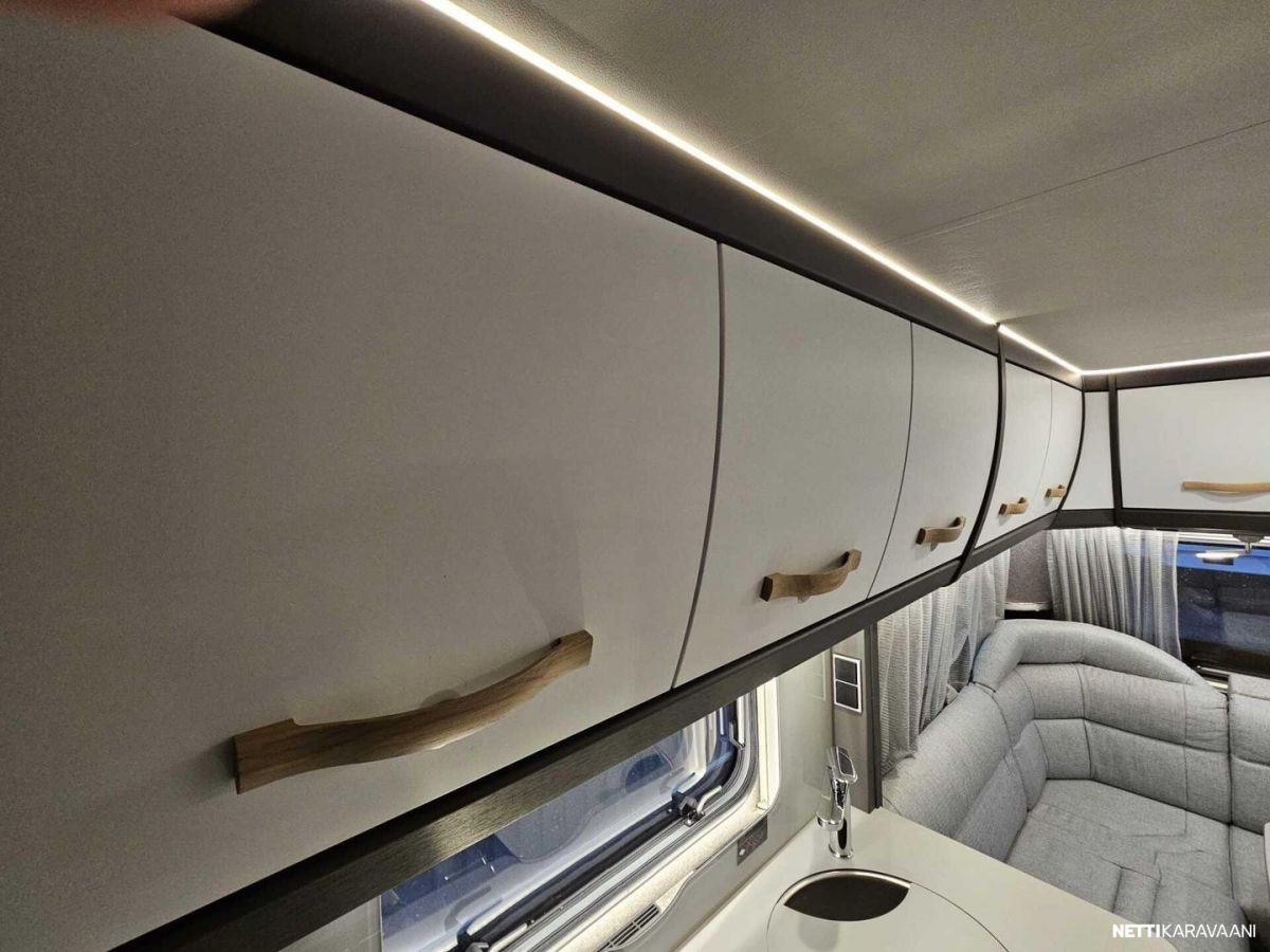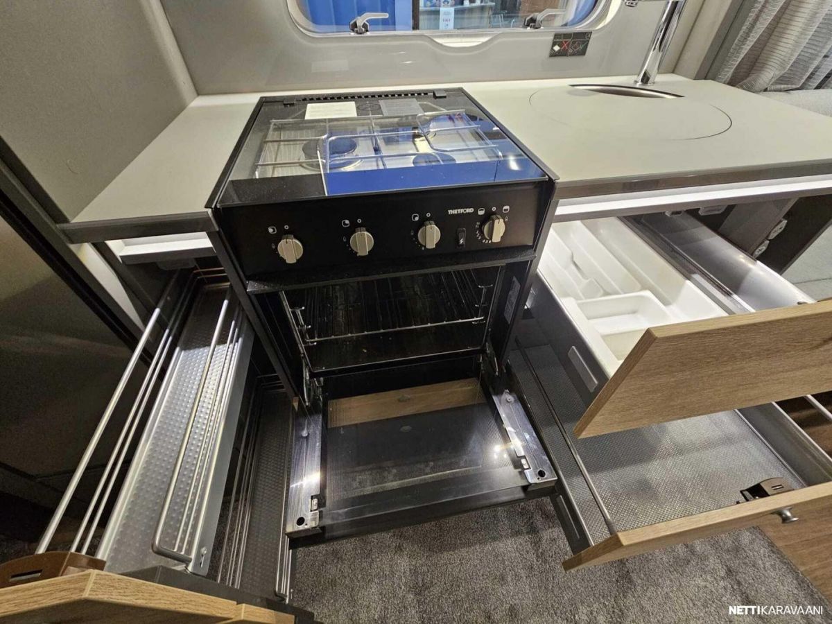 Kattoluukku, Kasetti WC, Lämminvesiboileri, Liesi, Jääkaappi, Pakastelokero, Kaasu-uuni, Eristetty harmaavesisäiliö, Kasettiverhot, Tukijalat, Lattiamatot asunto-osassa, Pesuallas, Lattialämmitys, Sähköpatruuna, Alde, Ilmastointi: Manuaalinen