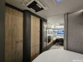 Keskiosassa pitkittäinen parivuode ja kaappitilaa.