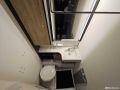 Keskemmällä keittiö kaasu-uunilla varustettuna, toisella puolen Wc-tilat.