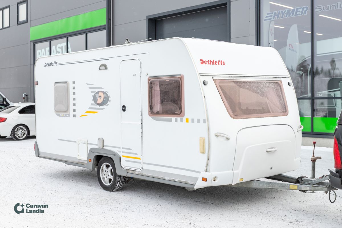Näppärä Dethleffs nestekiertoisella lämmityksellä. Soveltuu loistavasti pariskunnille. KORIN VARUSTEET: Kaasun ulosotto Tukijalat POHJARATKAISU: Parivuode pitkittäin Kasetti WC Pesuallas Suihku U-istuinryhmä LÄMMITYSJÄRJESTELMÄ: Nestekiertolämmitys ALDE Sähköpatruuna Sähköinen lattialämmitys Lämminvesiboileri ASUINOSAN VARUSTEET: Iso kattoikkuna Jääkaappi Pakastelokero Kaasuliesi Mikroaaltouuni Hyttysverkko ovi HUOLTOTIEDOT JA RENKAAT: Erikoisvanteet