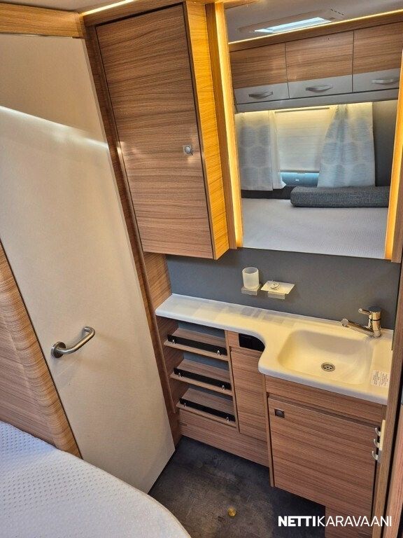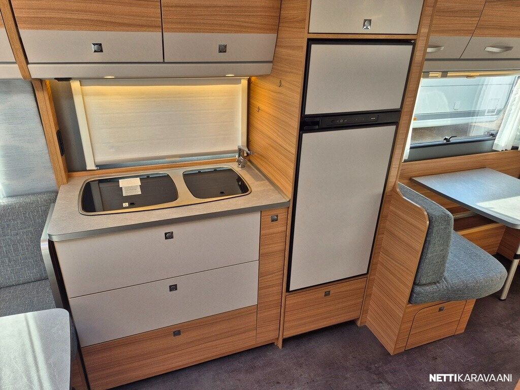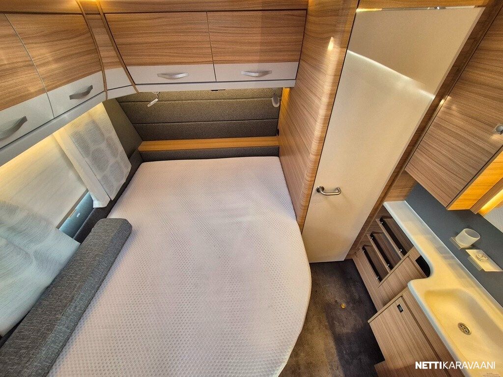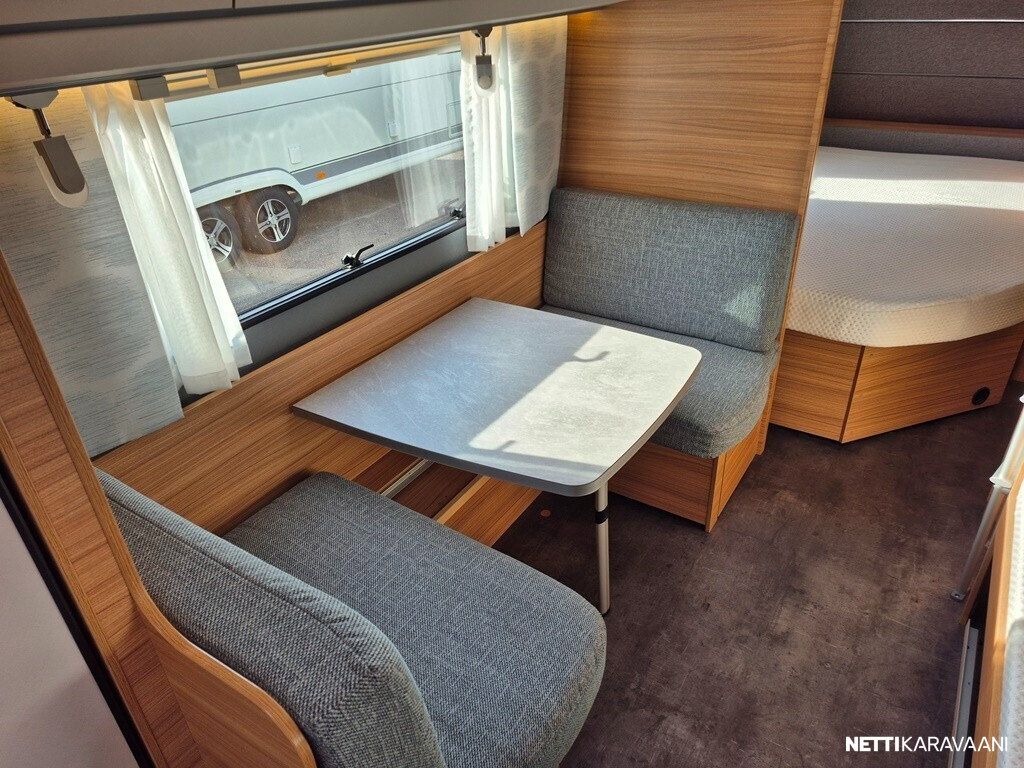 Muut varusteet: 650 mm leveä ulko-ovi, jossa ikkuna, kaihdin ja roskakori. Turvallisuutta lisää AL-KO-alusta iskunvaimentimilla, Turvavetokytkin. Vaunussa on myös 12 V ja 230 V pistorasioita sekä USB-liitäntöjä. Valaisimet ovat tyylikkäitä LED-valoja, joita voidaan siirtää kiskoilla tarpeen mukaan.