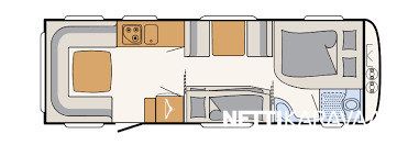 Tilat ja makuupaikat: 730 FKR -mallissa on 8 makuupaikkaa, mikä tekee siitä erinomaisen valinnan suurperheille. Vaunu on mahdollista jakaa puisilla liukuovilla kolmeen erilliseen alueeseen, mikä tuo yksityisyyttä.