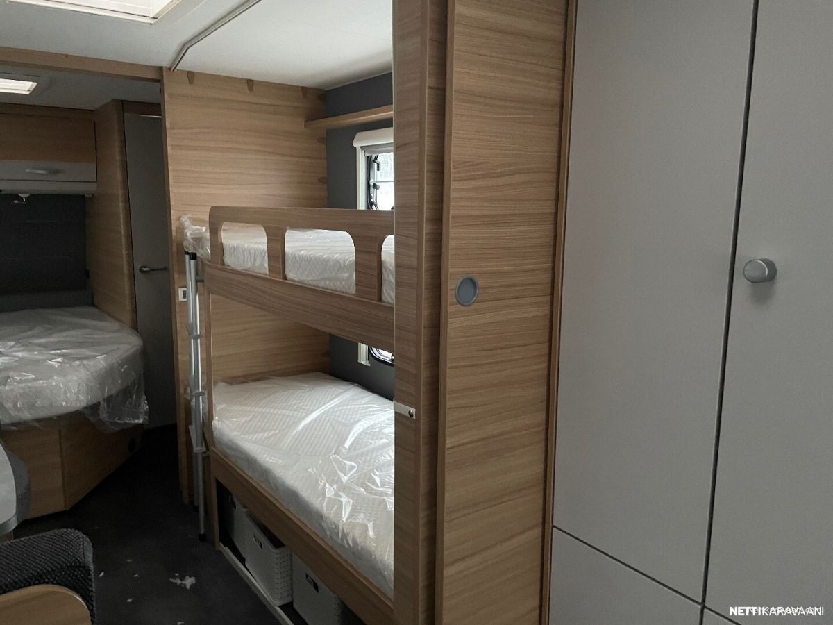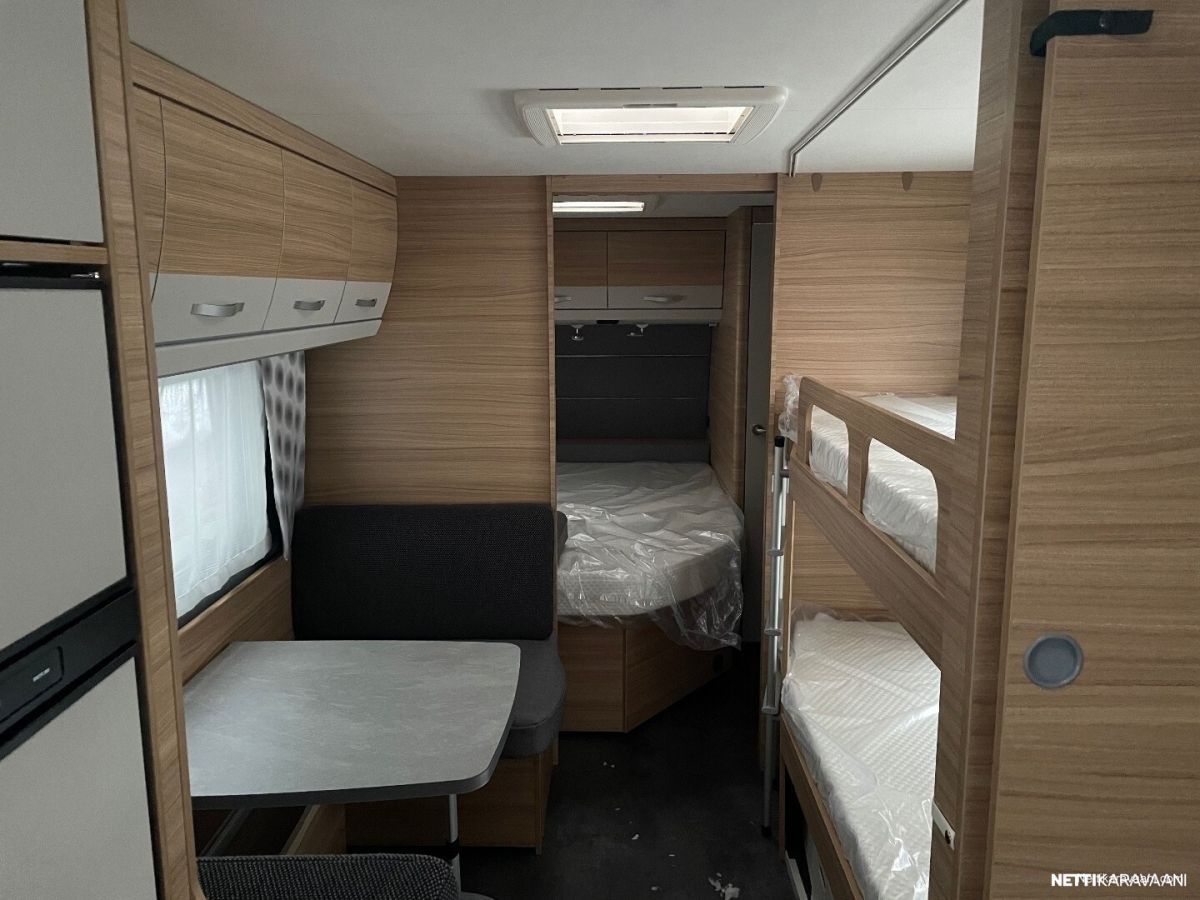 Hieno ja tilava kerrosvuoteellinen vaunu lapsiperheelle myös ympärivuotiseen käyttöön! Hinta uutena 58925, tämä esittelyvaunu erikois hinnoiteltuna kovaan alehintaan!
