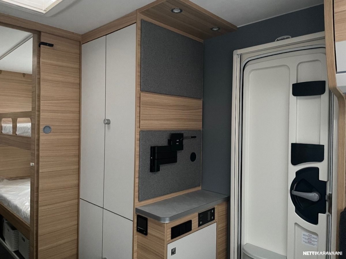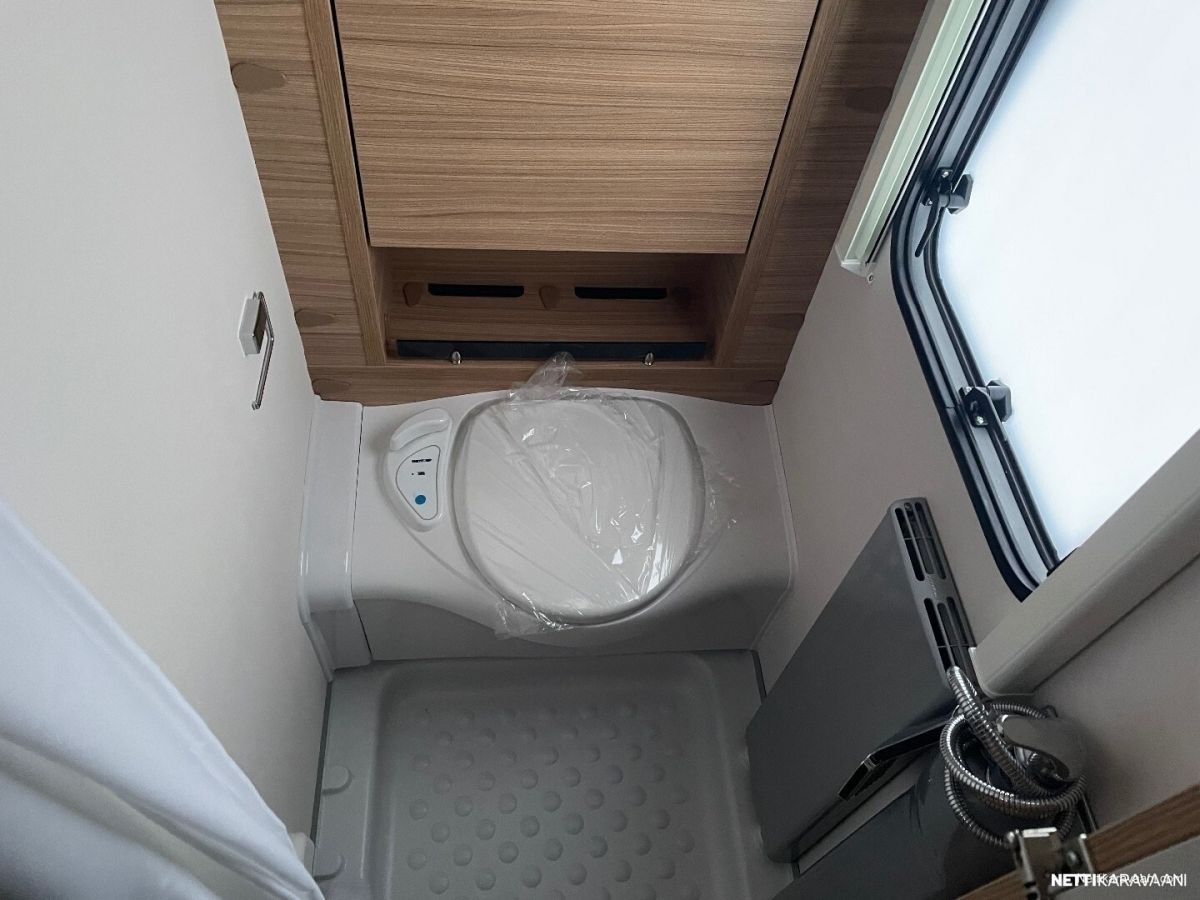Tässä vaunussa isompi 70 litran vesisäiliö mahdollistaa myös suihkun käytön.