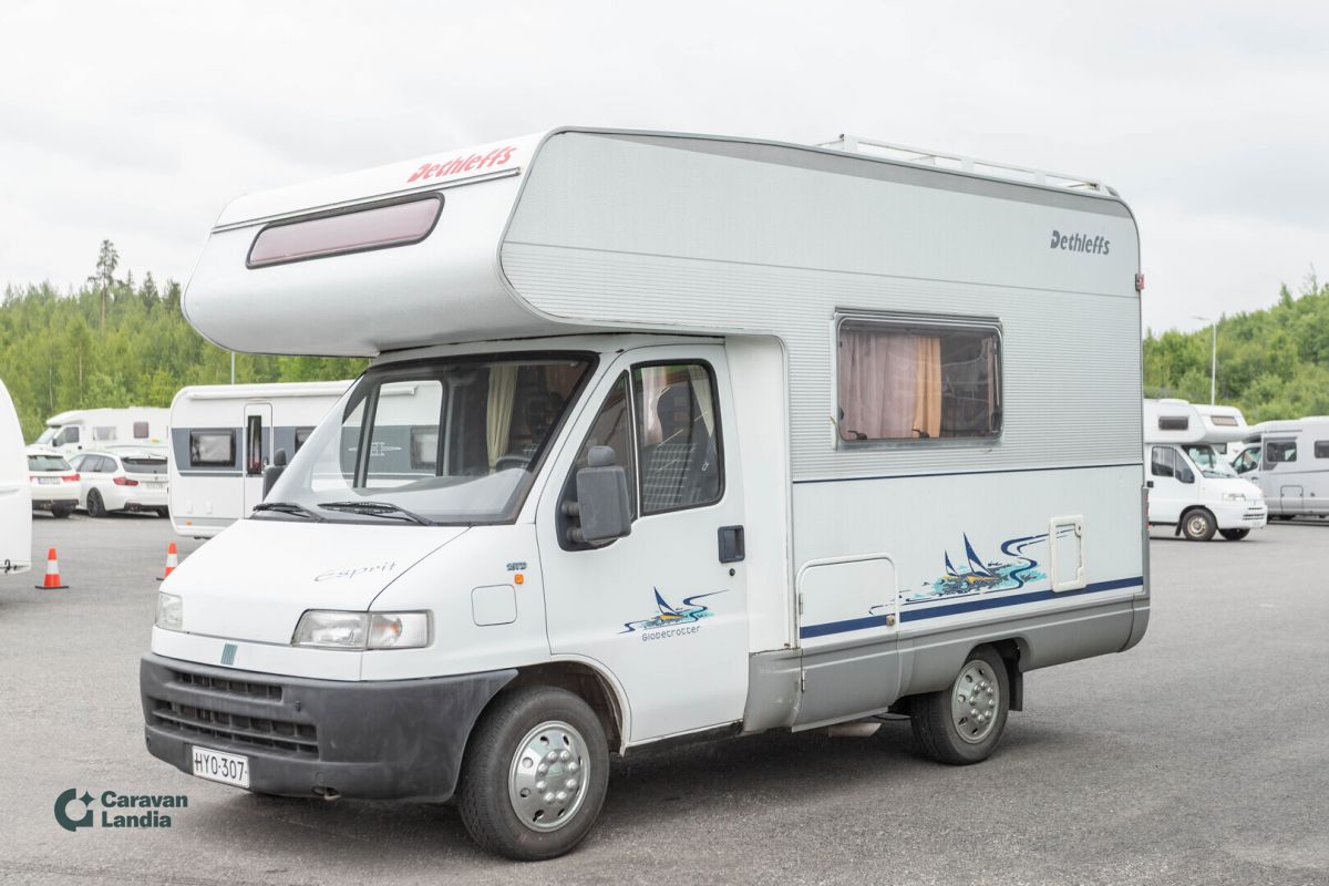 TÄHÄN AJONEUVOON 1,99 % KORKOTARJOUS + 3KK LYHENNYSVAPAA + ILMAINEN KOTIINKULJETUS - Näppärä alkovimallin Dethleffs valmiina seikkailuun. Markiisi Pyöräteline Kattokaiteet/tikkaat Kattoluukku Iso pöytäryhmä Keskuslämmitys Truma Lämminvesiboileri Kaasun ulosotto Takakeittiö Jääkaappi Pakastelokero Liesi Kasetti WC Pesuallas Suihku