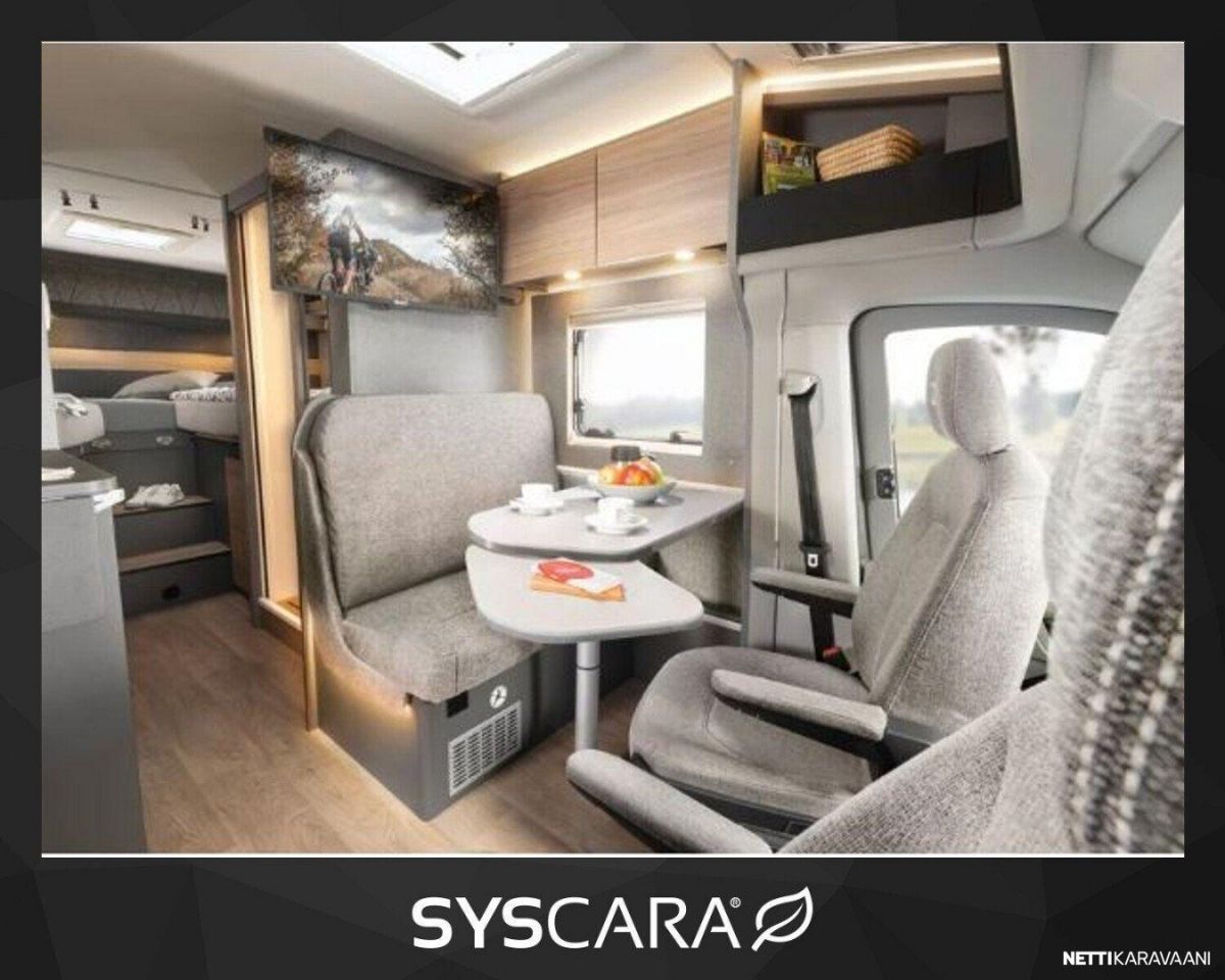 Ajotietokone, Jääkaappi, Kaasu-uuni, Kasetti WC, Kasettiverhot, Keskuslukitus: Kaukosäätöinen, Liesi, Lämminvesiboileri, Markiisi, Navigaattori, Ohjaustehostin, Pakastelokero, Pesuallas, Pysäköintikamera, Suihku, Sähkökäyttöiset ikkunat, Sähköpeilit, Vakionopeudensäädin, ABS-jarrut, Airbag, Erikoisvanteet, Huoltokirja, Kattoluukku, Sähkörappu, Trumatic, Turbo, Ajonvakautusjärjestelmä, Käynnistyksenesto, Luistonesto, Sumuvalot, Eristetty harmaavesisäiliö, Lattialämmitys, Sähköpatruuna, Vetokoukku