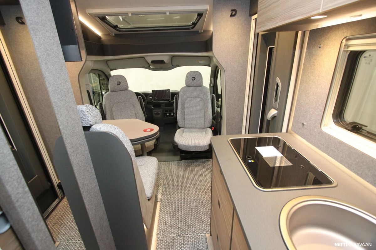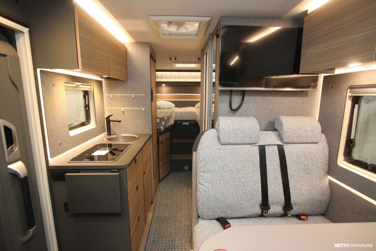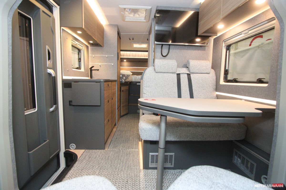 Sisätilat tuntuvat tilavilta ja kutsuvilta. Korkealaatuinen eristys ja vakiovarusteinen 6kw:n diesel lämmitin pitävät sisätilat lämpiminä ja viihtyisinä – jopa kovilla pakkasilla.