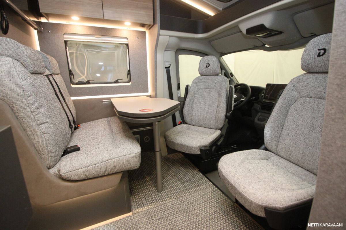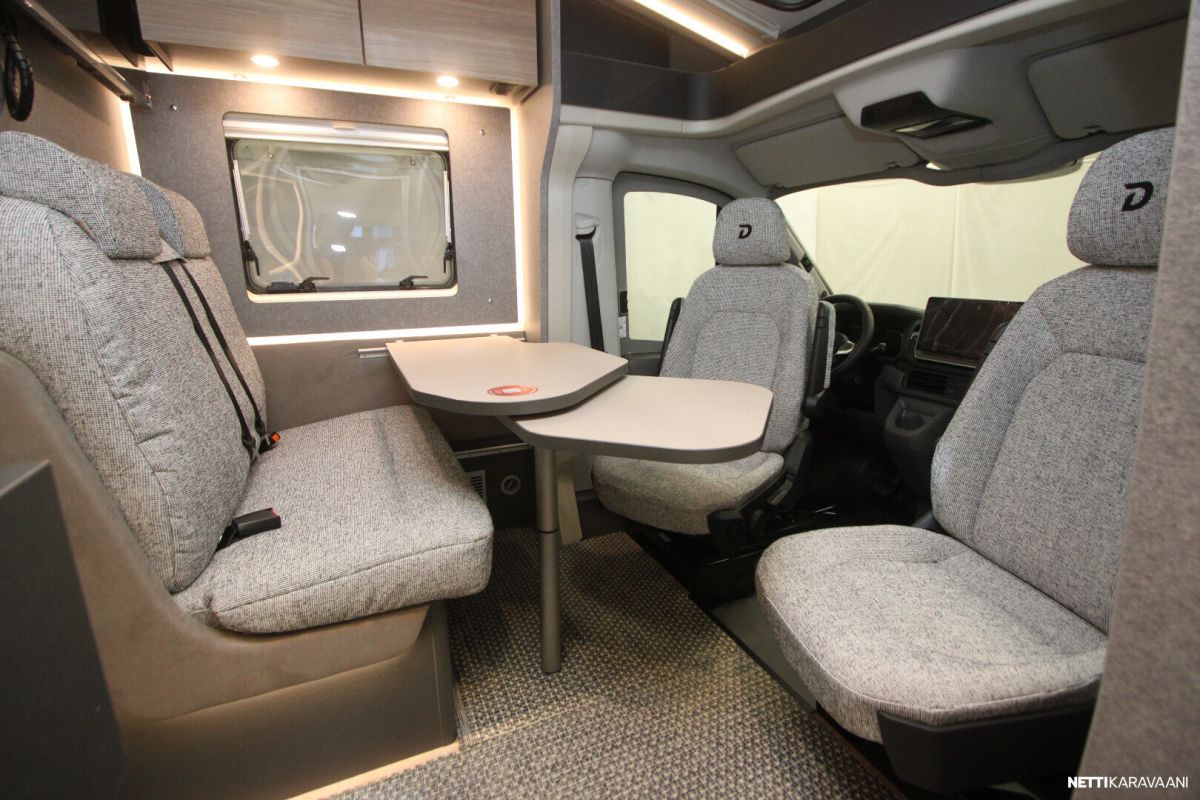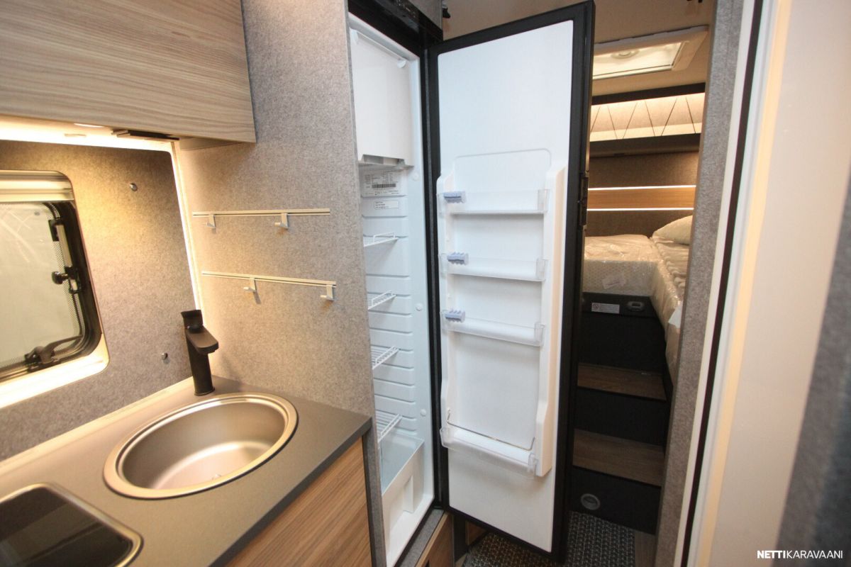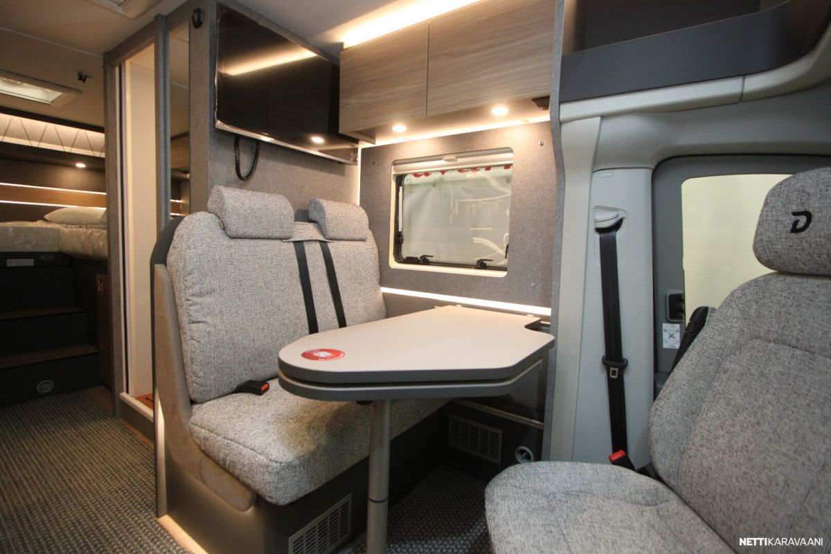 Sisätilat tuntuvat tilavilta ja kutsuvilta. Korkealaatuinen eristys ja vakiovarusteinen 6kw:n diesel lämmitin pitävät sisätilat lämpiminä ja viihtyisinä – jopa kovilla pakkasilla.