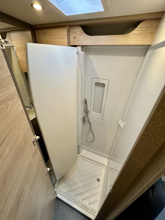 Laadukas Dethleffsin retkiauto tyylikkäällä värityksellä ja automaattina nyt pihassa nopeaan toimitukseen, Kätevällä kääntöseinällä WC muuttuu helposti suihkuksi, Auto vakiovarusteilla: 61.190eur, Auto sisältää seuraavat lisävarusteet:, Active-paketti Fiat 3.390eur (sis. 16 Bicolor alumiinivanteet - Nahkainen ohjauspyörä ja vaihdekepin nuppi - Techno Trim - Tablettiteline - DAB-antenni peilissä - kaiuttimet - radion ohjainpainikkeet ohjauspyörässä - Kaihdinverhot ohjaamon etuikkunassa - Kaihdinverhot ohjaamon sivuikkunoissa - Hyttysverkko liukuovessa - Sähköinen ulkoaskelma - Ikkuna pimennys- ja hyttysverholla pesutilassa - Midi-Heki -kattoikkuna 70 x 50 cm pimennys- ja hyttysverholla istuinryhmän yllä - Kääntyvä pöydänjatke - Peruutuskameran kaapelivalmius - Aurinkopaneelien kaapelivalmius - 12V TV-valmius ja SAT-valmius - LED-valaistus keittiössä - 230V pistorasia yläkaapissa vasemmalla edessä (istuinryhmän yllä) - 12V pistorasia takaosassa vasemmalla alhaalla - Ylimääräinen tupla-USB edessä vasemmalla), Fiat 140hv 8-vaihteinen automaatti 3.755eur, Lanzarote Grey ulkoväri 885eur, Truma Combi 4E lämmitys (kaasu/sähkö) sis. digitaalinen käyttöpaneeli 665eur