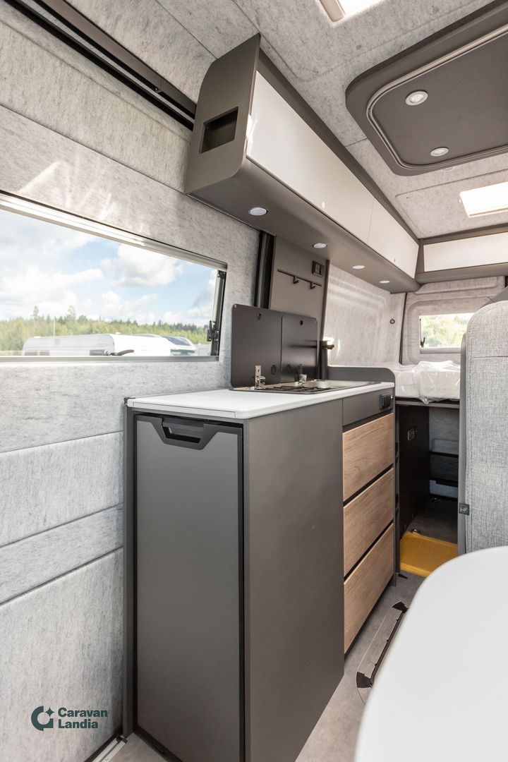 Tästä tyylikkäällä kokonaisuudella Volkswagenin alustalla oleva uutuusmallinen retkeilyauto! Autossa on tilava kylpyhuone sekä avara parivuode. LED-päiväajovalot Erikoisvanteet Hyttysverkko ovi Peruutuskamera Multimediakeskus Navigointijärjestelmä Automaattivaihteisto Ilmastointi ajotilassa Lukkiutumattomat jarrut (ABS) Monitoimiohjauspyörä Sähkökäyttöiset ikkunat Sähköpeilit Adaptiivinen vakionopeudensäädin Kattoluukku Aurinkopaneeli Iso kattoikkuna Keskuslämmitys Lämminvesiboileri Truma Sähkörappu Jääkaappi Pakastelokero Liesi Parivuode Kasetti WC Pesuallas Suihku Eristetty ja lämmitetty harmaavesisäiliö Ota yhteyttä Eetu Koivuniemi 0503558586 Meiltä voit ostaa etänä vaikka kotisohvaltasi! Kokeile kuinka helppoa ja vaivatonta matkailuajoneuvon ostaminen on.