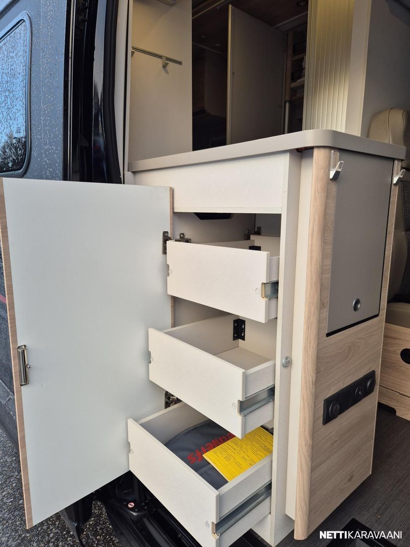 Ohjaustehostin, Sähkökäyttöiset ikkunat, Erikoisvanteet, ABS-jarrut, Airbag, Huoltokirja, Käynnistyksenesto, Kattoluukku, Luistonesto, Vakionopeudensäädin, Ajotietokone, Sähköpeilit, Ajonvakautusjärjestelmä, Sumuvalot, Turbo, Trumatic, Kasetti WC, Suihku, Lämminvesiboileri, Pyöräteline, Markiisi, Liesi, Jääkaappi, Pakastelokero, Kasettiverhot, Sähkörappu, Pesuallas, Pysäköintikamera, Keskuslukitus: Kaukosäätöinen, Ilmastointi: Manuaalinen, Radio, Bluetooth