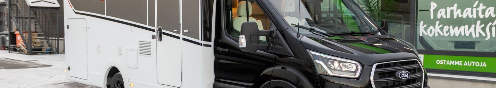 TÄHÄN AJONEUVOON 2,99 % KORKO + UUDEN VARUSTE-EDUT! - Loistavalla pohjaratkaisulla oleva auto ympärivuotiseen käyttöön! Tähän ajoneuvoon otettu lisävarusteena: Active-paketti Fordin 16''-alumiinivanteet Automaattinen ilmastointilaite pölyn- ja siitepölynsuodattimella Sähkökäyttöiset ja lämmitetyt sivupeilit Ohjaamon kattoikkuna Ohjaamon kaihdinverhot Vasen luukku takatalliin Light Moments: Epäsuora tunnelmavalaistus yläkaappien yllä Light Moments: Seinien epäsuora tunnelmavalaistus Upotetut, tuplalasitetut ikkunat, pimennys- ja hyttysverhot Erillisvuoteiden yhdistämismahdollisuus parivuoteeksi Assistant-paketti Bi-Xenon-ajovalot, staattinen kaarrevalo ja LED-päiväajovalot Pre-Collision-Assist (Törmäyksenestoavustin automaattisella hätäjarrutuksella) Adaptiivinen vakionopeudensäädin Navigaattori Liikennemerkkien tunnistusjärjestelmä Talvipaketti Alustan alapuoliset putket eristetty Kiertoilmalämmitys (kaasu) 6 kW, 1,8 kW sähkövastus sekä digitaalinen käyttöpaneeli Sähköisesti lämmitettävä harmaavesisäiliö ja putket Eristetty harmaavesisäiliö XPS-eriste asunto-osassa Metallimusta ohjaamon ulkoväri Lattialämmitys Sähköpatruuna Truma Iso jääkaappi Kasetti WC Erillisvuoteet Hubbet ylävuode L-keittiö Suihku Iso takatalli, Alv-vähennyskelpoinen