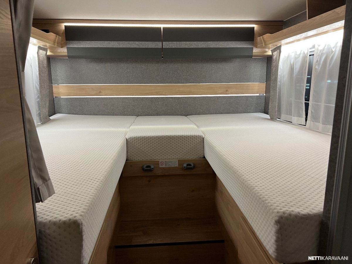 Ajotietokone, Jääkaappi, Kasetti WC, Kasettiverhot, Keskuslukitus: Kaukosäätöinen, Liesi, Lämminvesiboileri, Markiisi, Ohjaustehostin, Pakastelokero, Pesuallas, Pysäköintikamera, Suihku, Sähkökäyttöiset ikkunat, Sähköpeilit, Vakionopeudensäädin, ABS-jarrut, Airbag, Käynnistyksenesto, Sumuvalot, Erikoisvanteet, Kattoluukku, Lattialämmitys, Sähkörappu, Trumatic, Turbo, Sähköpatruuna