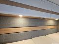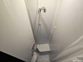 Keskellä Wc/suihkutilat ja L-keittiö varustettuna isolla jääkaapilla.