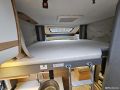 Etuosassa pöytäryhmä, sivusohva, kääntyvät ohjaamon istuimet ja nostovuode.