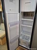 Keskellä keittiö korkealla jääkaapilla varustettuna.