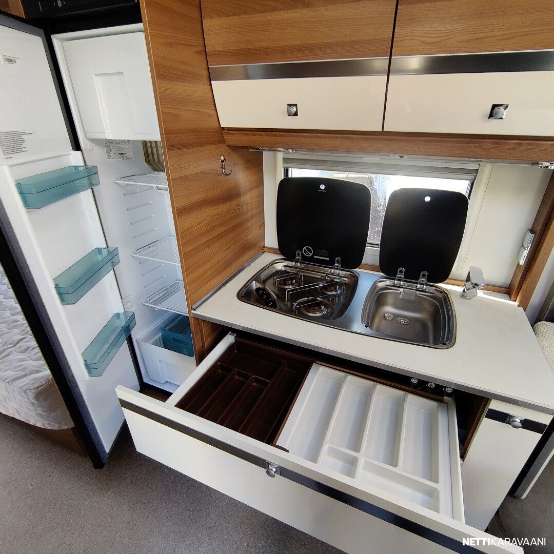 Siisti erillisvuodemalli tilavalla takakylpyhuoneella ja suihkulla. Alden nestekeskuslämmitys kaasulla ja sähköllä Nestekiertoinen lattialämmitys Lämmin vesi Mower vaunun siirtojarjestelma Akku ja laturi 2x tavara luukku sisälle Suksiluukku Kaasun ulosotto Taulu TV Alumiini vanteet kWh mittari Korkea jääkaappi Radio Juuri katsastettu 27.3.2026 Seuraava katsastus 2.1.2029 Vain yksi omistaja uudesta saakka Seissyt pääasiassa leirintäalueella