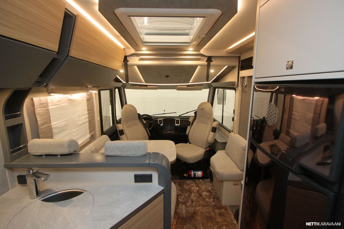Ajotietokone, Jääkaappi, Kasetti WC, Kasettiverhot, Keskuslukitus: Kaukosäätöinen, Liesi, Lämminvesiboileri, Markiisi, Ohjaustehostin, Pakastelokero, Suihku, Sähköpeilit, Vakionopeudensäädin, ABS-jarrut, Airbag, Käynnistyksenesto, Erikoisvanteet, Kattoluukku, Sähkörappu, Trumatic, Turbo, Kattoluukku, Pesuallas, USB, Pysäköintikamera, Aurinkopaneeli