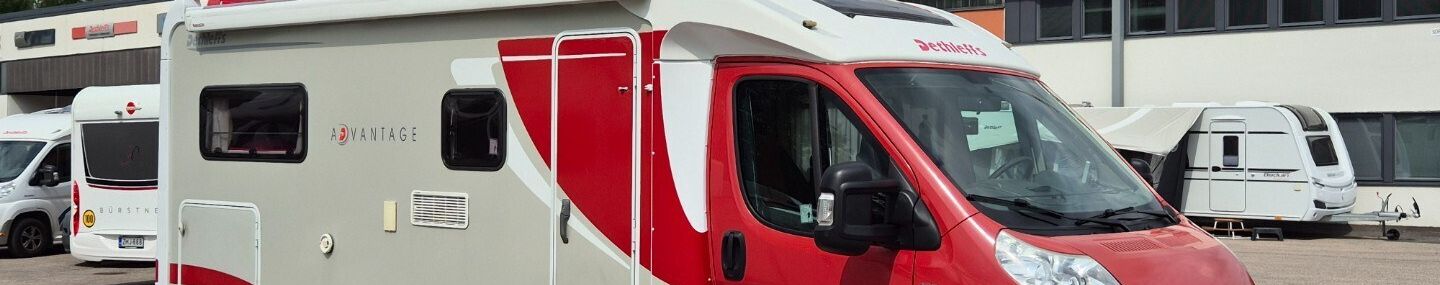 Erillispedillinen puoli-integroitu Dethleffs. Alde lämmitys, sähköinen lattialämmitys.