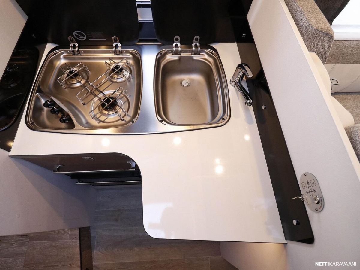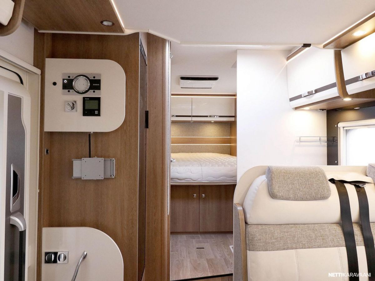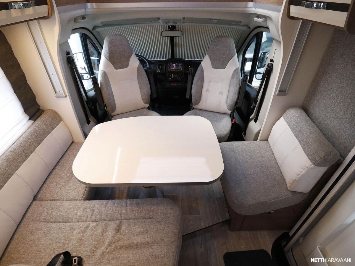 Kattoluukku, Vakionopeudensäädin, Sähköpeilit, Trumatic, Kasetti WC, Suihku, Lämminvesiboileri, Pyöräteline, Markiisi, Jääkaappi, Pakastelokero, Kaasu-uuni, Eristetty harmaavesisäiliö, Lattialämmitys, Sähköpatruuna, Pysäköintikamera, Keskuslukitus: Kaukosäätöinen, Bluetooth