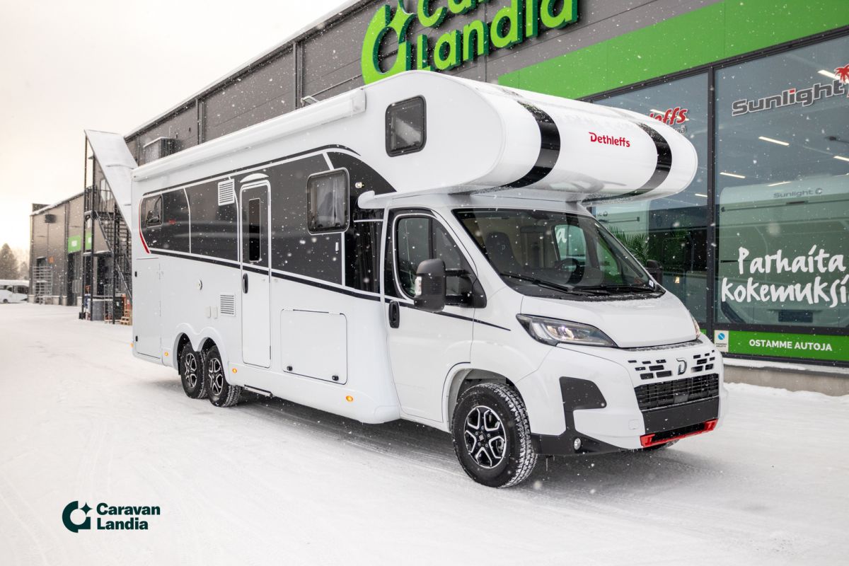 TÄHÄN AJONEUVOON 2,99 % KORKO + UUDEN VARUSTE-EDUT! - Tilava ja laadukas Dethleffs tarjoaa mukavuutta, käytännölliset säilytysratkaisut, erinomaisen eristyksen ja tilavat nukkumapaikat ympäri vuoden! OHJAAMON VARUSTEET 180 Hv moottori Full LED-lähivalot Polttoainesäiliö 90l 19l AdBlue-säiliö 70cm asunto-osan ovi Automaatti 16" alumiinivanteet KORIN VARUSTEET 70cm asunto-osan ovi 3 pyörän polkupyöräteline hissillä Lattianvahvuus: 42mm, sivuseinät 34mm, katto 35mm Suuritakatalli XPS-Eriste asunto-osassa GT-Advance White-ulkodesign Maxi AL-KO alusta Kattotuuletin Kotelomarkiisi 6m Floyd verhoilu Kalustesävy Rosario Cherry 2 isofix paikkaa Korkea vaatekaappi Ylöskääntyvä alkovivuode Vuoteentekomahdollisuus istuinryhmästä Uuni Iso jääkaappi 137l Multimedialaite sis. Apple Carplay ja Android auto Peruutuskamera Tv-teline Lämmönvaihdin Alde Aurinkopaneelivalmius Raikas- ja harmaavesisäiliöt lämmitetyssä tilassa Automaattinen pullonvaihtaja Kaasun ulosotto POHJARATKAISU Parivuode TAKUUT 10 vuoden tiiveystakuu / 2 vuoden Fiat takuu AJOKORTTILUOKKA Ajokortti C, Alv-vähennyskelpoinen