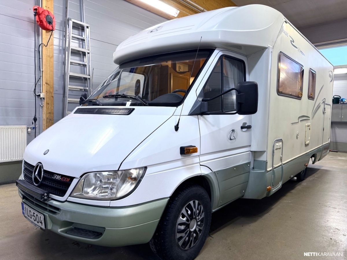 Eberi -lisälämmitin, 316 CDI -moottori, kahdet renkaat, LED -lisäkaukovalo, vakionopeudensäädin, aurinkopaneeli, Truma -lämmitys, markiisi, rekisteröity 6:lle, suuri takatalli molemminpuoleisin luukuin, erillinen suihku, soitin, TV-antenni.