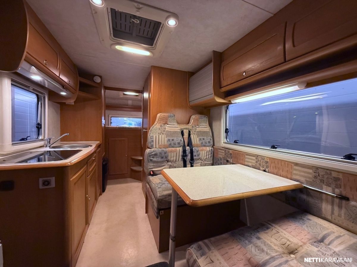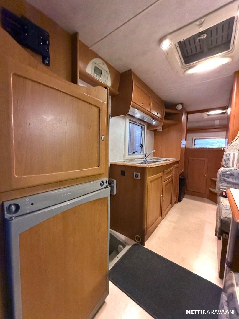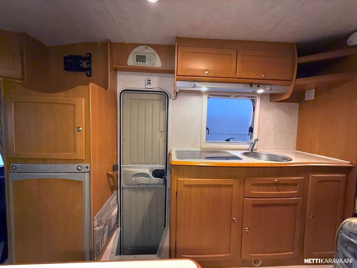 Jääkaappi, Kasetti WC, Kasettiverhot, Lattiamatot asunto-osassa, Liesi, Lohkolämmitin, Lämminvesiboileri, Markiisi, Ohjaustehostin, Pakastelokero, Pesuallas, Suihku, TV-antenni tai lautasantenni, Vakionopeudensäädin, Aurinkopaneeli, Kahdet renkaat, Kattoluukku, Polttoainekäyttöinen lisälämmitin, Trumatic, Turbo