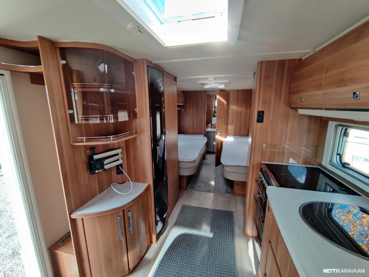 Tosi siisti ja hyvin pidetty vaunu. Alden nestekeskuslämmitys kaasulla ja sähköllä Lattialämmitys Lämmin vesi Tilava takakylpyhuone kunnollisella suihkulla Kaasu uuni Korkea jääkaappi Oven pielessä kaappi ulkotakeille Tavara luukku vuoteen alle Akku ja laturi kWh mittari TV antenni ja teline Kitkavetopää Pyyhekuivain Seissyt kausipaikalla Vain yksi omistaja uudesta saakka Meidän uutenakin myymä yksilö Katsastettu 9.10.2025 Seuraava katsastus 12/2027